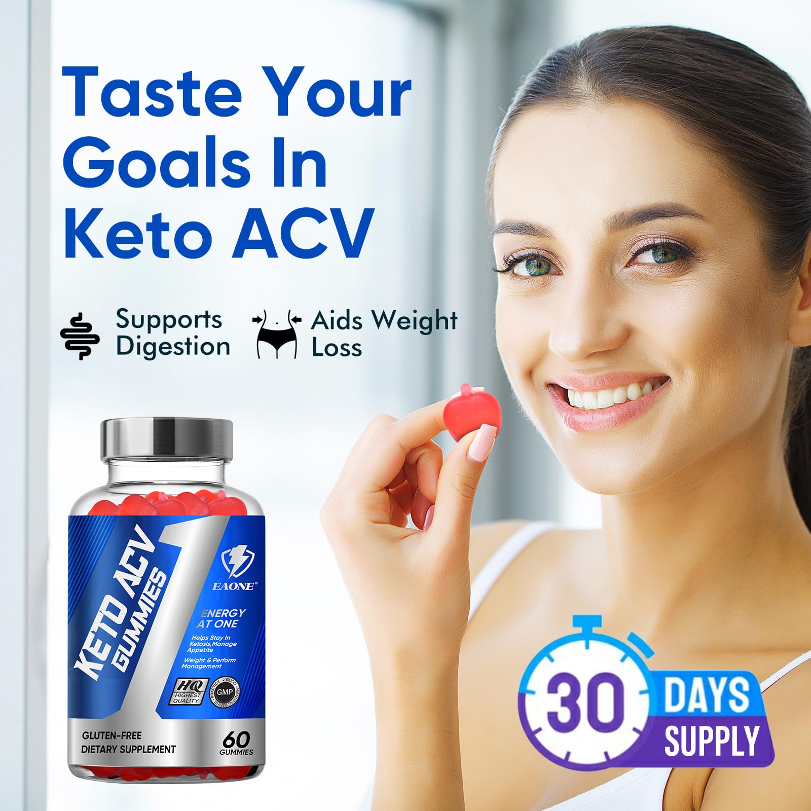 - QUICK & EASY: Incorporating EAONE Keto ACV Gummies into your daily routine couldn't be simpler or more enjoyable. With just a quick chew, you'll effortlessly infuse your day with essential vitamins and nutrients. Say goodbye to complicated regimens and hello to a seamless and delightful way to support your health goals.