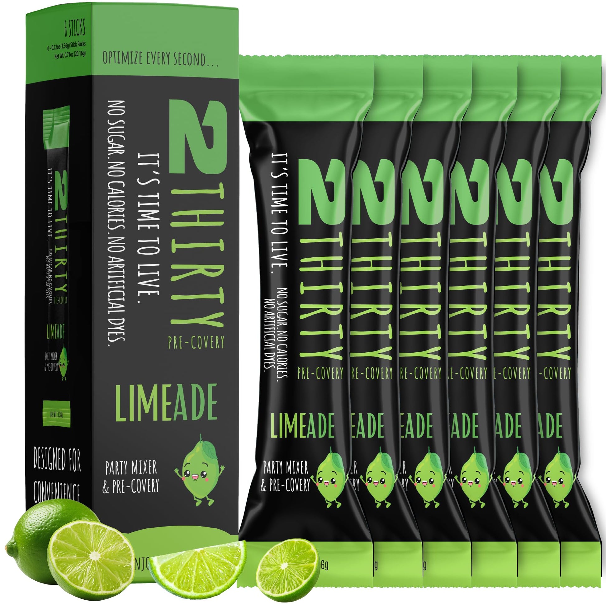 2THIRTY Hydration & Precovery Mixer | No Sugar, Zero Calories | Electrolyte Powder Packets + Vitamin B12, Aminos & Natural Herbs (6 Pack, Limeade)