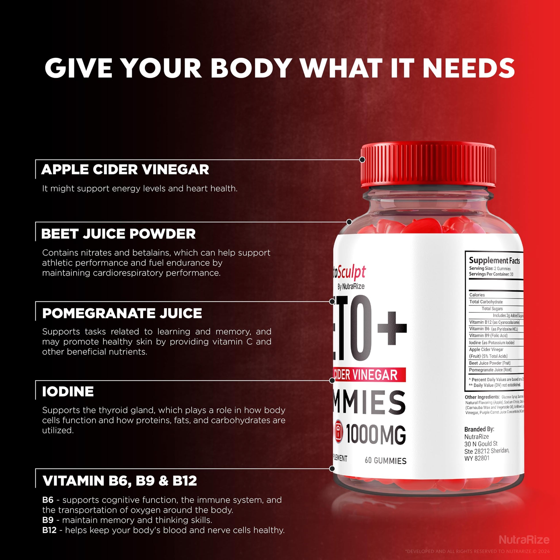 (3 Pack) Ketosculpt Gummies, Keto Sculpt ACV Gummies, All Natural Apple Cider Vinegar, Official Formula for Weight Loss Support, Premium Keto+ACV Gomitas Reviews (180 Gummies)