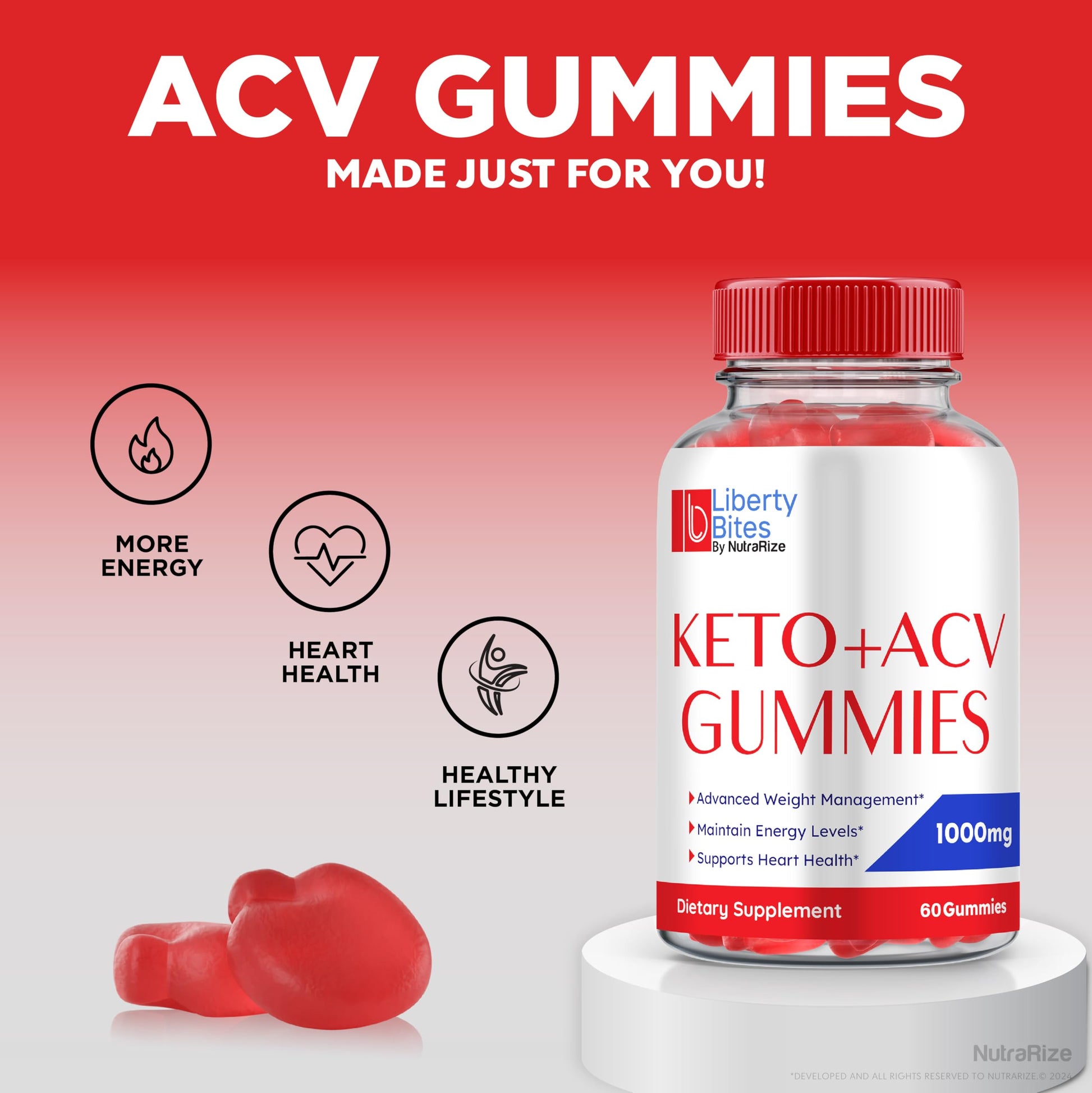 (3 Pack) Liberty Bites, Liberty Bites Keto ACV Gummies, All Natural Keto Plus ACV for Weight Loss, Apple Cider Vinegar Gummy, Premium ACV Keto Formula, Official LibertyBites Gomitas (180 Gummies)