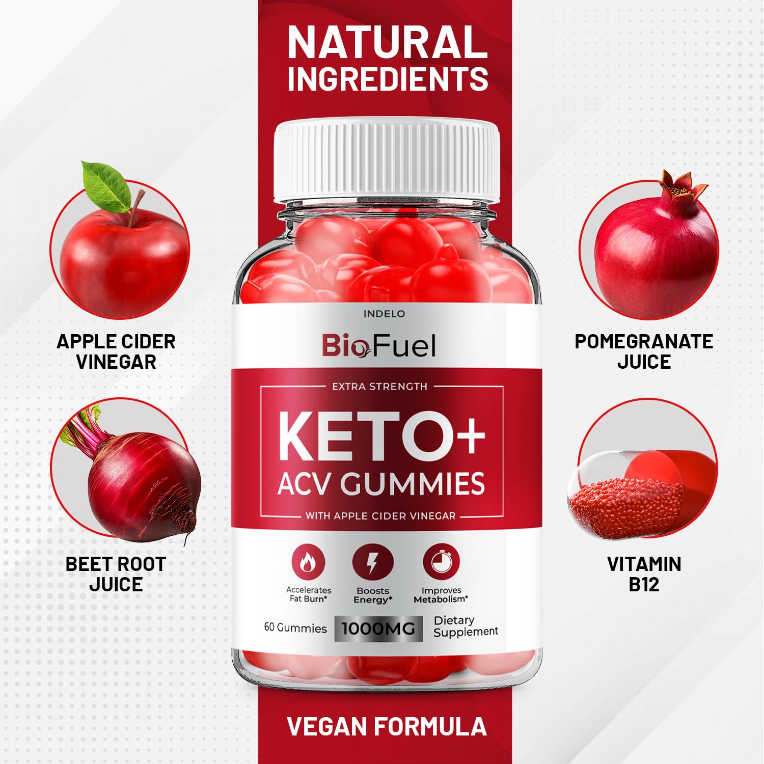 - BioFuel Gummies 1000mg: Indulge in the advantages of our potent Keto Bio Fuel gummies, brimming with 1000mg of essential components such as ACV, B12, Beet Juice, and Pomegranate Powder. These high-strength gummies are crafted to propel you toward your dietary and wellness objectives.