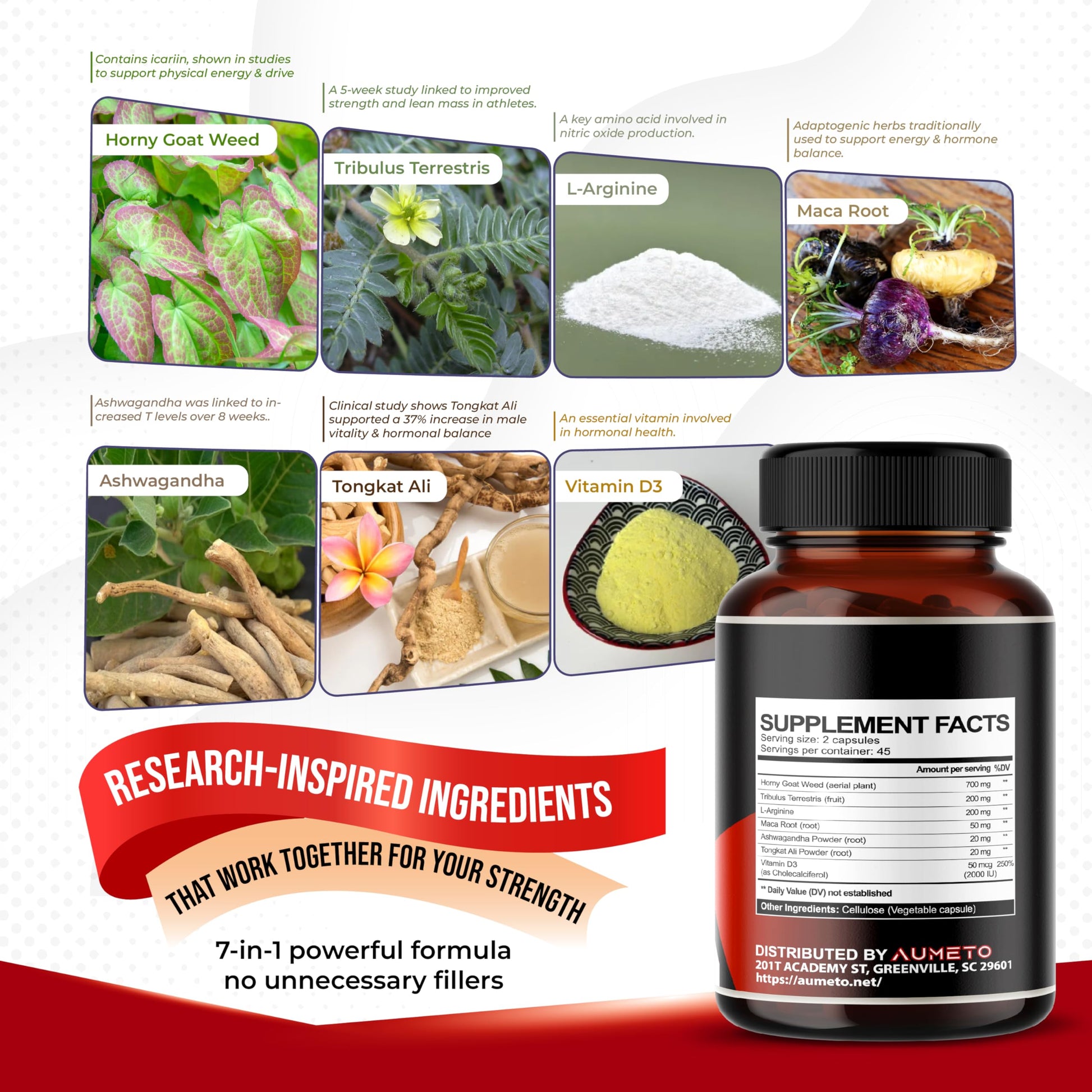 - ⚡ 1 FORMULA - 7 POWERFUL INGREDIENTS -- Aumeto Test Support Supplement contains 7 natural ingredients into a single capsule. This unique formulation is highly concentrated, with each serving providing 16,540 mg of raw powder. Taking just one capsule per day is sufficient to reap all the benefits that the supplement has to offer.