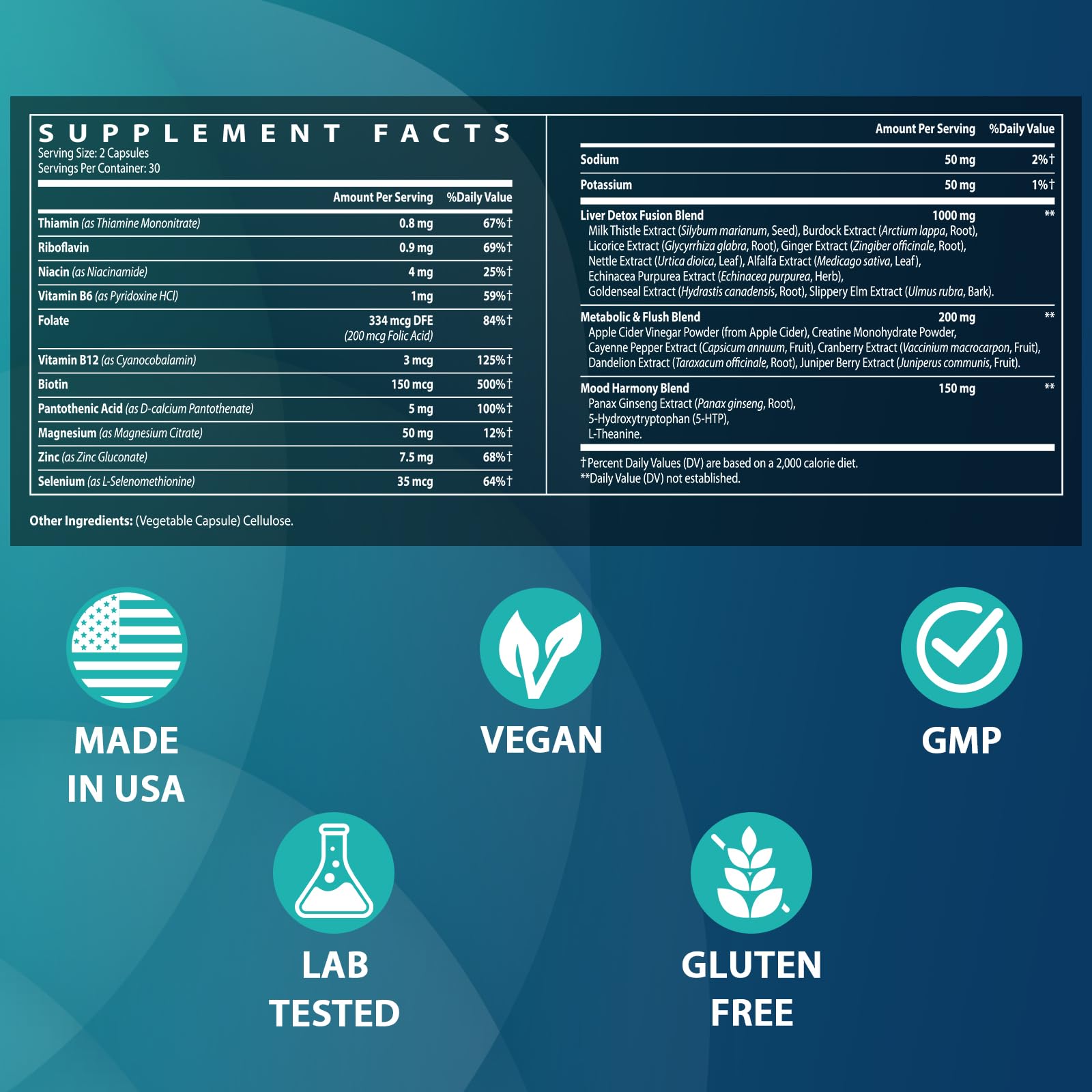 - Quality Assurance: Made in the USA with strict adherence to quality standards, our detox cleanse product is reliable & effective, ensuring a safe detox experience you can trust