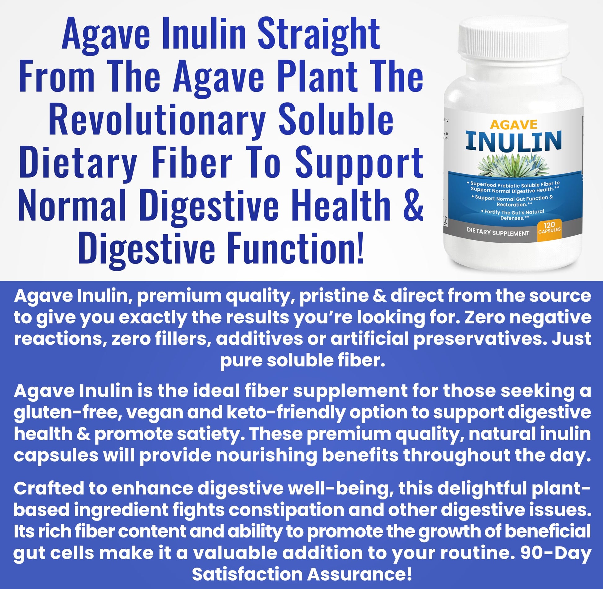 - Easy to Incorporate: Introducing this agave inulin into your daily regimen couldn't be simpler. Take 1-3 inulin capsules a day and you’ll see how it supports normal, comfortable digestive function, balanced movements and much more! Agave inulin in a capsule makes it a convenient way to incorporate extra fiber in your diet wherever you are.