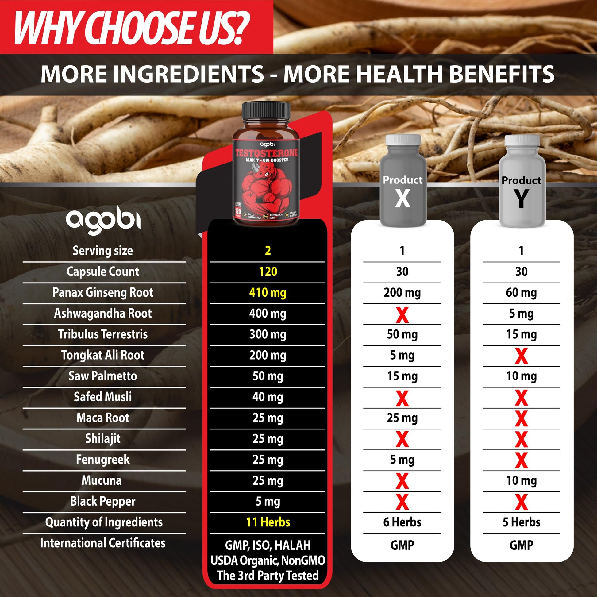 - ✅ Superior Strength: Agobi capsules all ingredients. Specially, our Ginseng, Ashwagandha, Tribulus are 10:1 Concentrated, more than 5:1 from others. Support always "On" status.