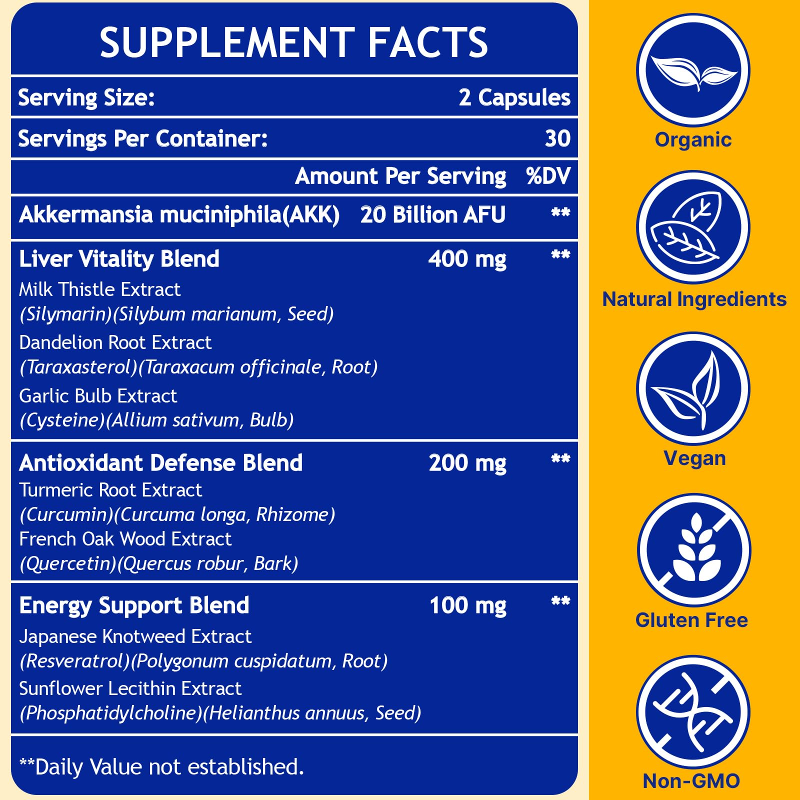 - Gut-Liver Connection: Leveraging the power of 20 Billion AFU of Akkermansia and milk thistle, AKK+ with milk thistle supports both liver and gut health. By enhancing the gut-liver axis, this advanced akkermansia with milk thistle supplement improves liver and gut detoxification. Cleanse your liver, gut & body with our herbal liver supplement, it's good for women and men who looking to liver & gut cleanse detox, protect their livers while also supporting your liver regular daily functioning