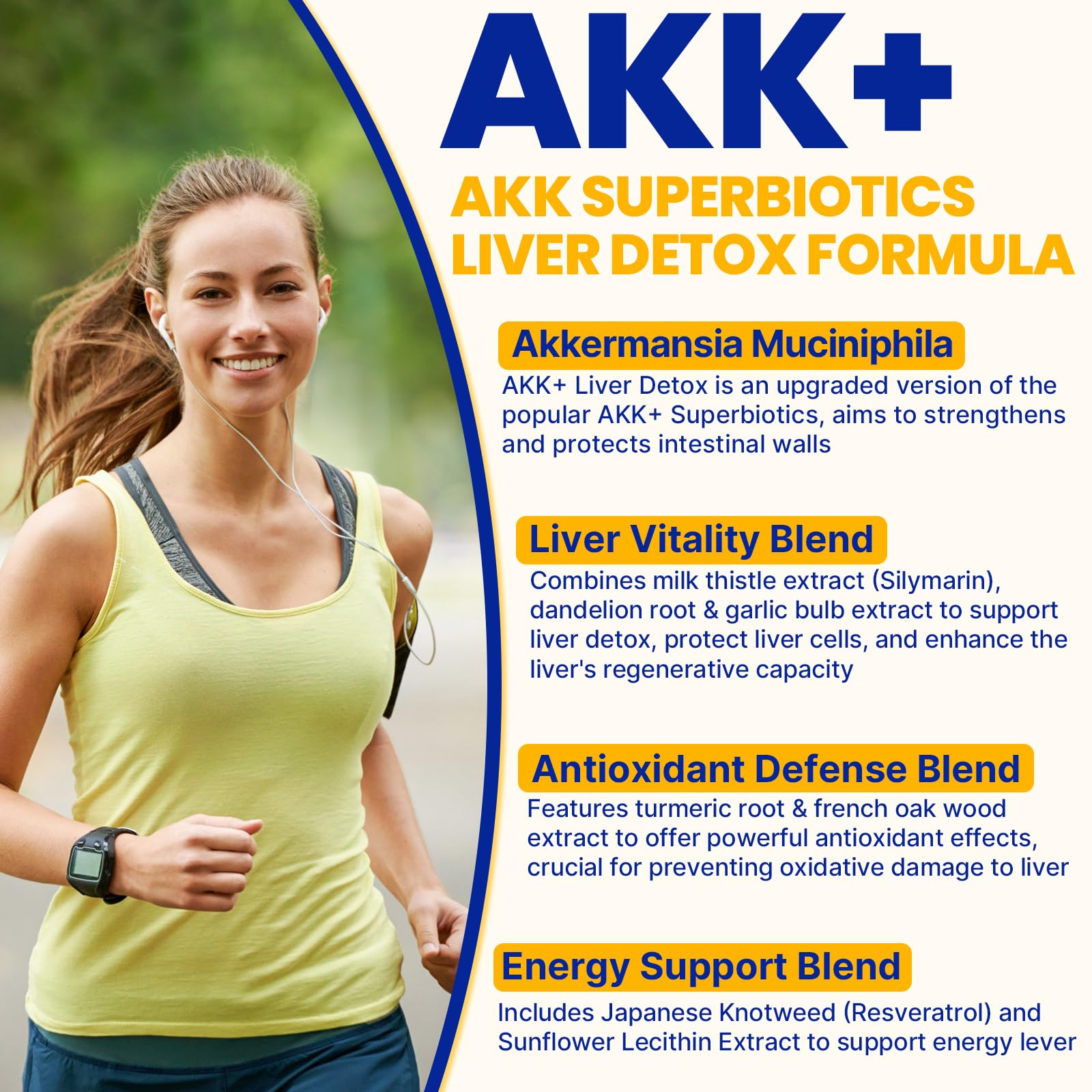 - Advanced AKK+ Liver Detox Formula: Our AKK+ Superbiotics Liver Detox is an upgraded version of the popular AKK+ Superbiotics, now featuring 20 Billion AFU of Akkermansia probiotic with Milk Thistle Extract, This potent liver health formula enhances the gut-liver axis, liver cleanse detox & repair, liver support, additional support for digestive health, bile secretion, natural diuretic effects, which can enhance the overall detox process & improve the body's ability to eliminate toxins