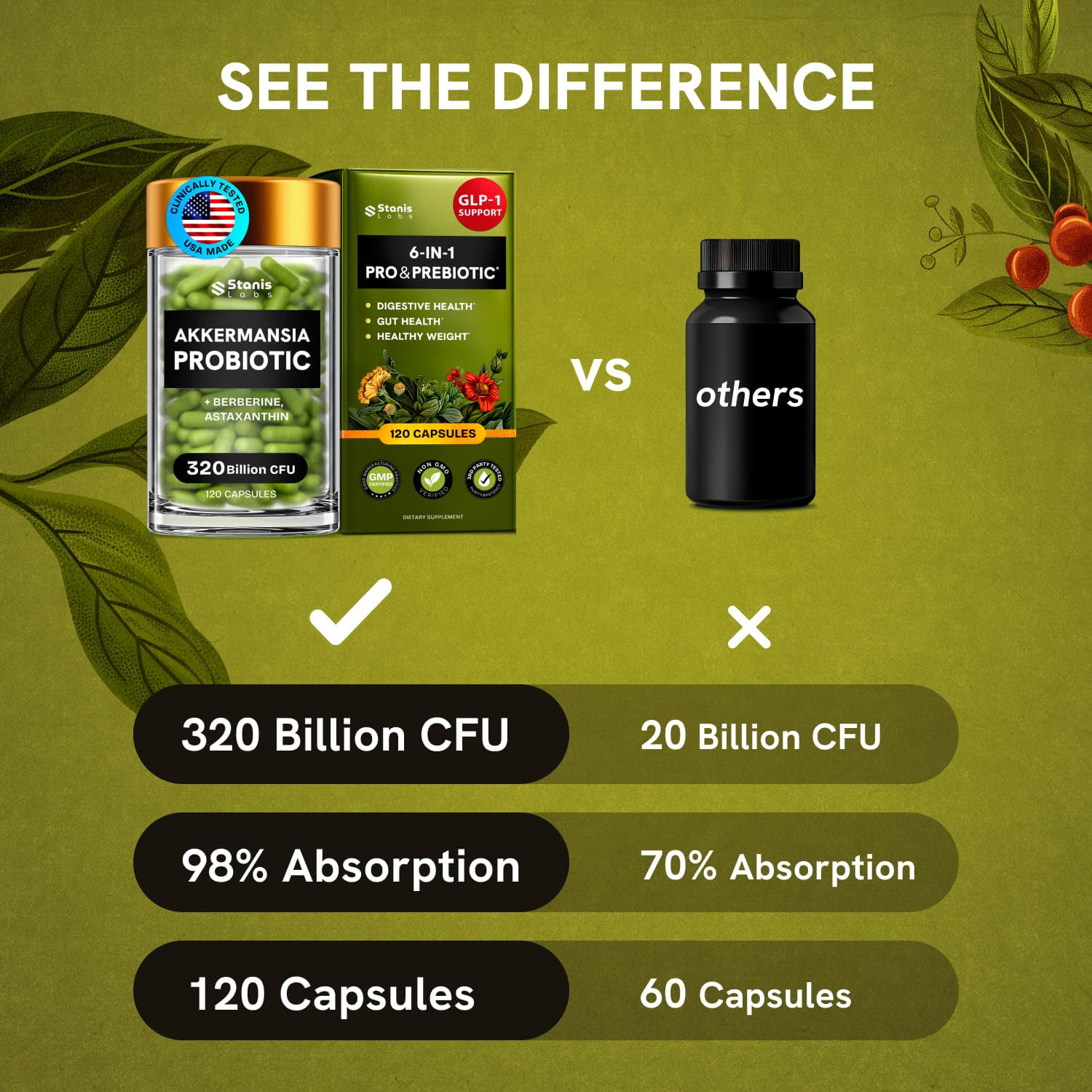 - CUTTING-EDGE FORMULA - THE GLP-1 PROBIOTIC YOU CAN TRUST Probiotic Akkermansia is backed by science and delivered through a high-quality, enteric-coated capsule that ensures the pre and probiotics survives the stomach acid and reaches the gut intact. Trust your gut health for men to the best.