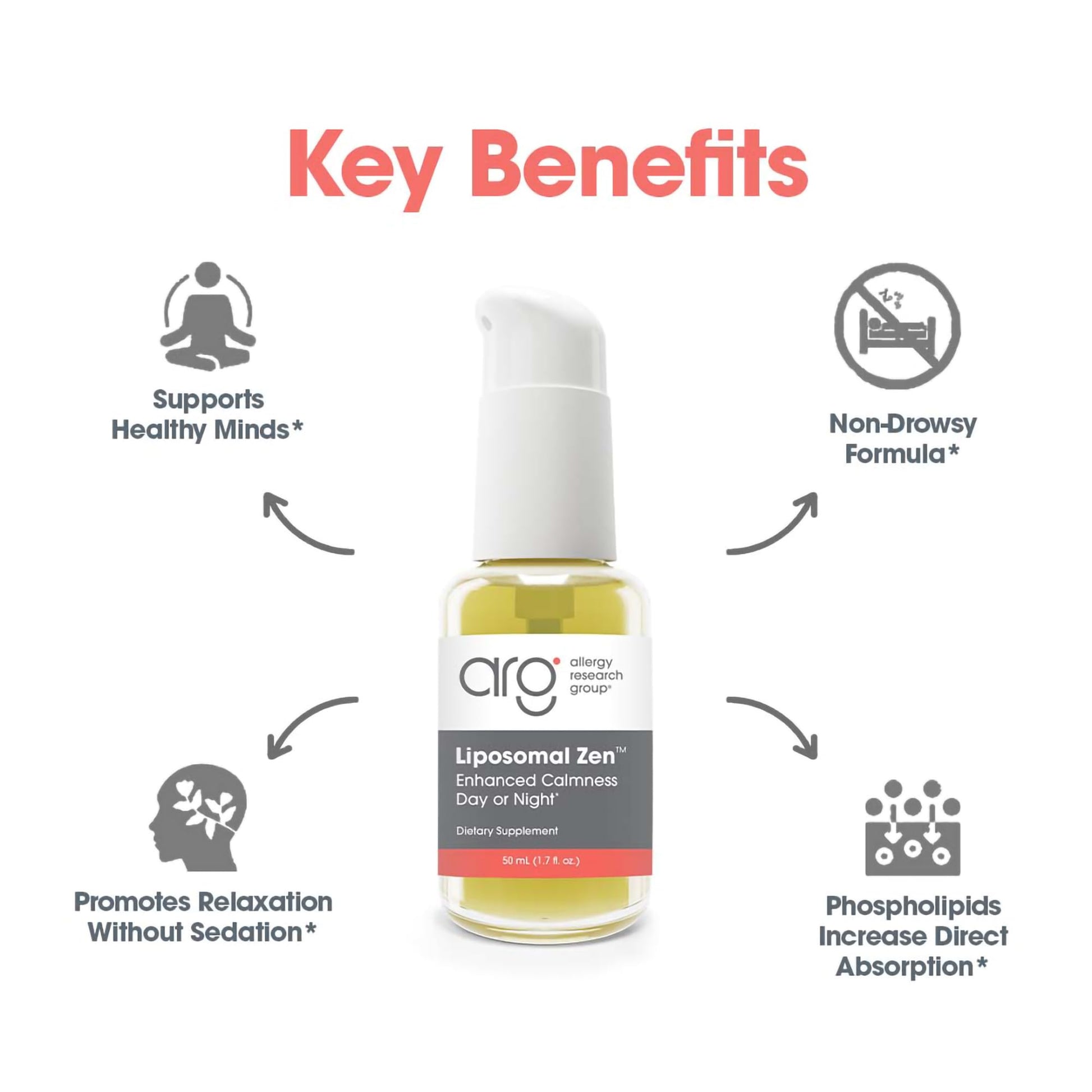 Allergy Research Group Liposomal Zen - L-Theanine Liquid Supplement, GABA Calming Support, Sleep Liposomal, Day or Night, Sunflower Phospholipids, Fast-Acting Zen Formula - 1.7 Fl Oz