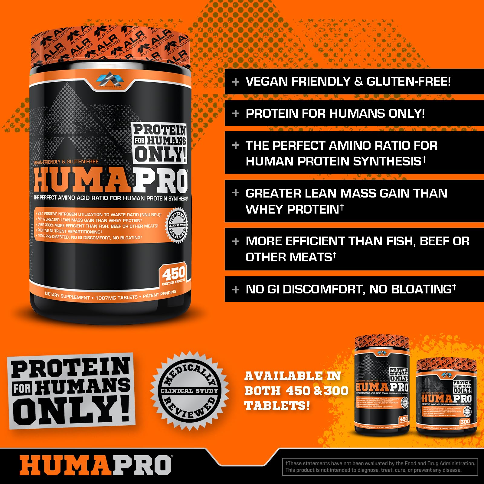 ALR Industries Humapro Tablets | Amino Acids Protein Matrix for Humans | 99% Utilization for Lean Muscle | Vegan, Gluten Free | 450 Tablets / 90 Servings