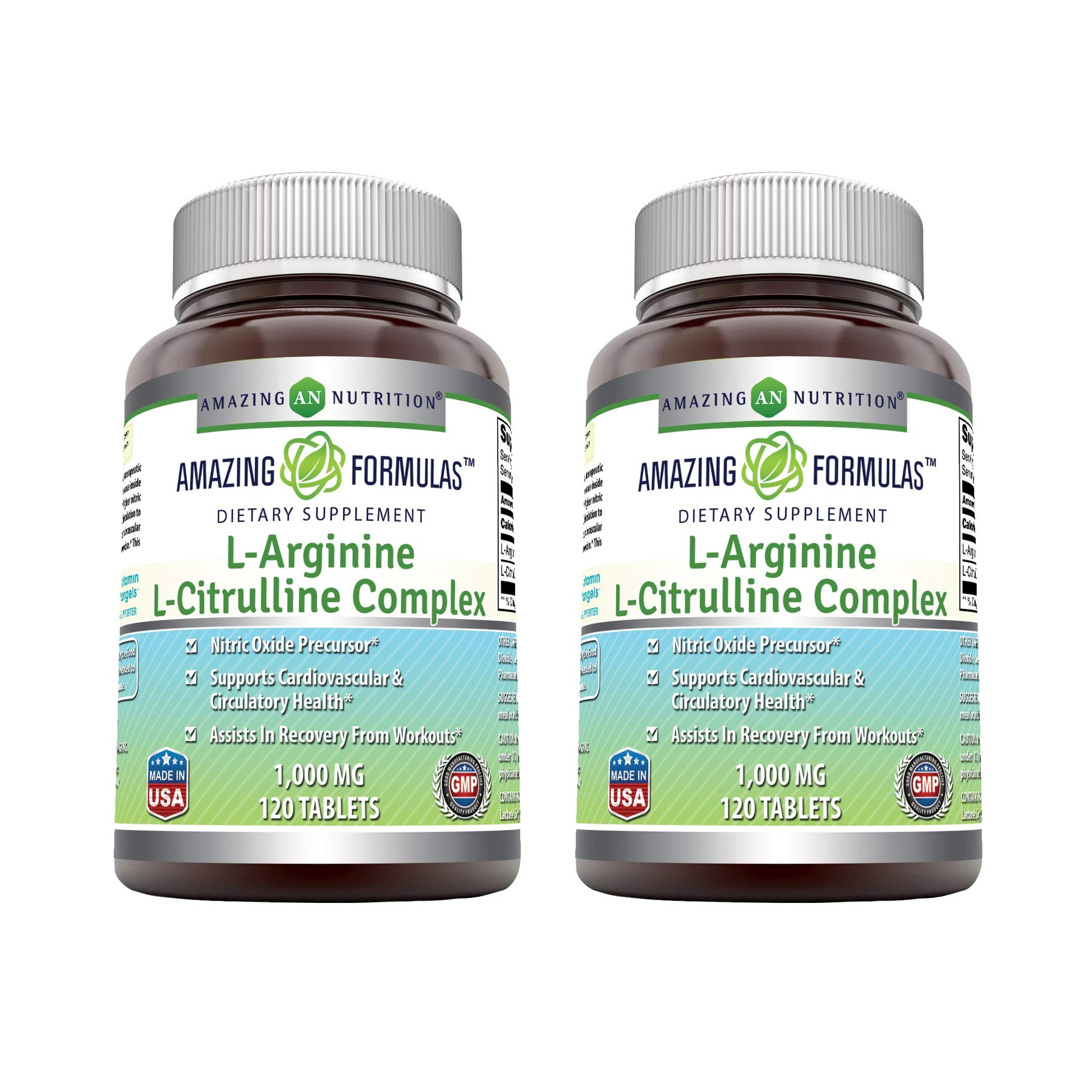 Amazing Formulas L-Arginine/L-Citrulline Complex 1000mg Tablets Supplement | Non-GMO | Gluten Free | Made in USA (120 Count | 2 Pack)