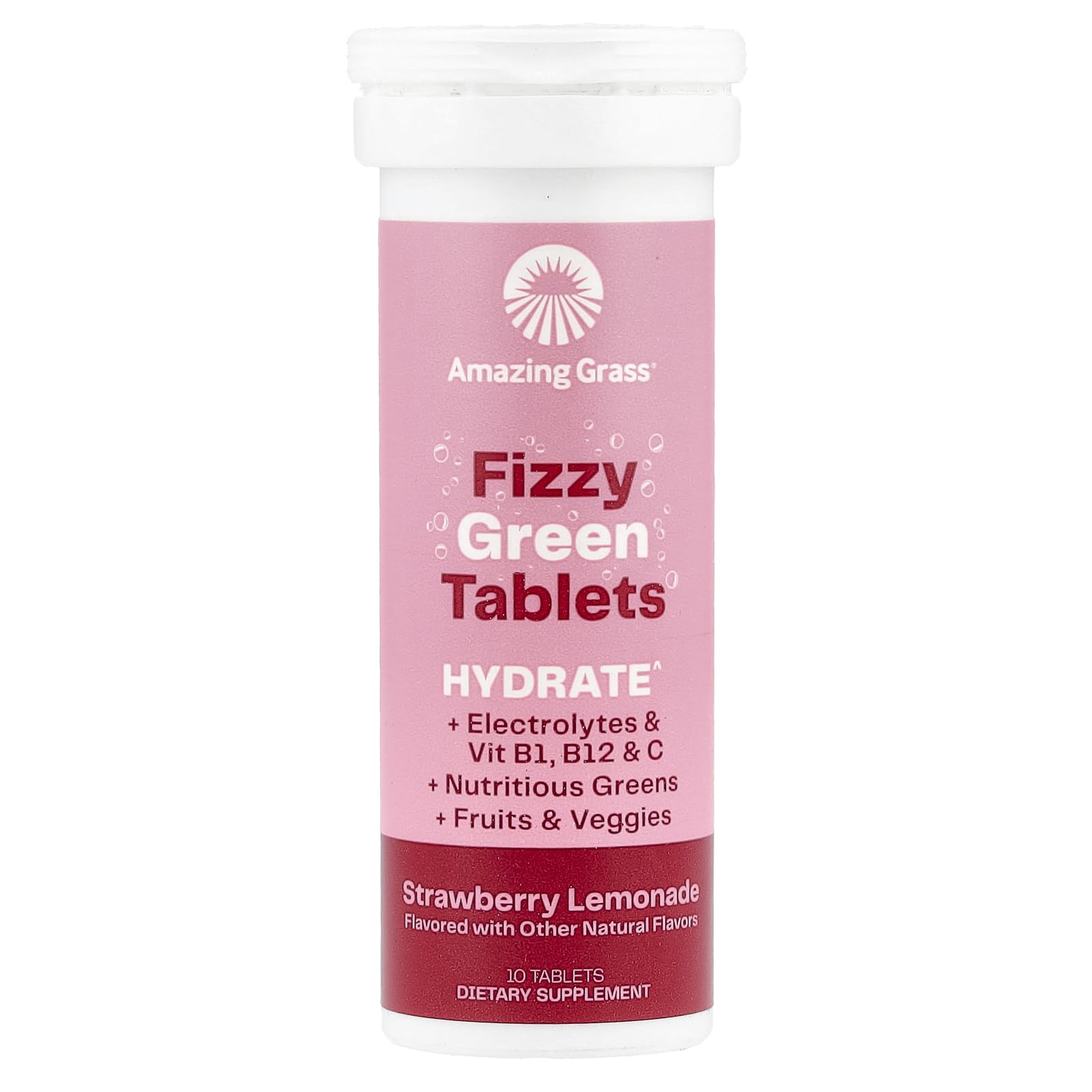Amazing Grass Effervescent Tablets, Green Superfood Hydration Water Flavoring Tablet, Electrolyte, Vitamins and One Serving of Greens, Strawberry Lemonade Flavor, 10 Count
