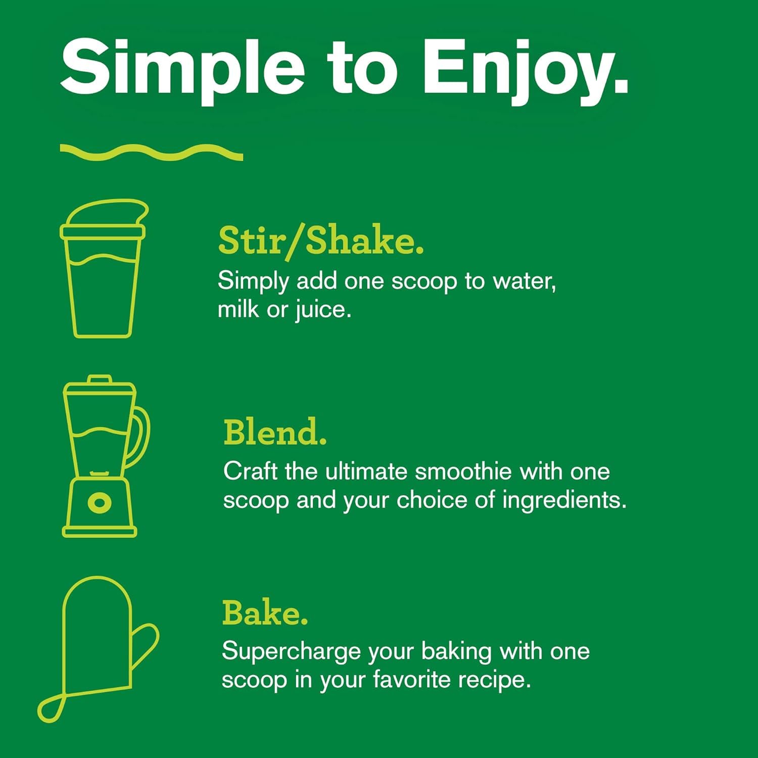 - 30 Servings, 8.5 Oz Add one scoop to 12 Oz or more to your beverage of choice, craft the ultimate smoothie or add to your favorite recipe