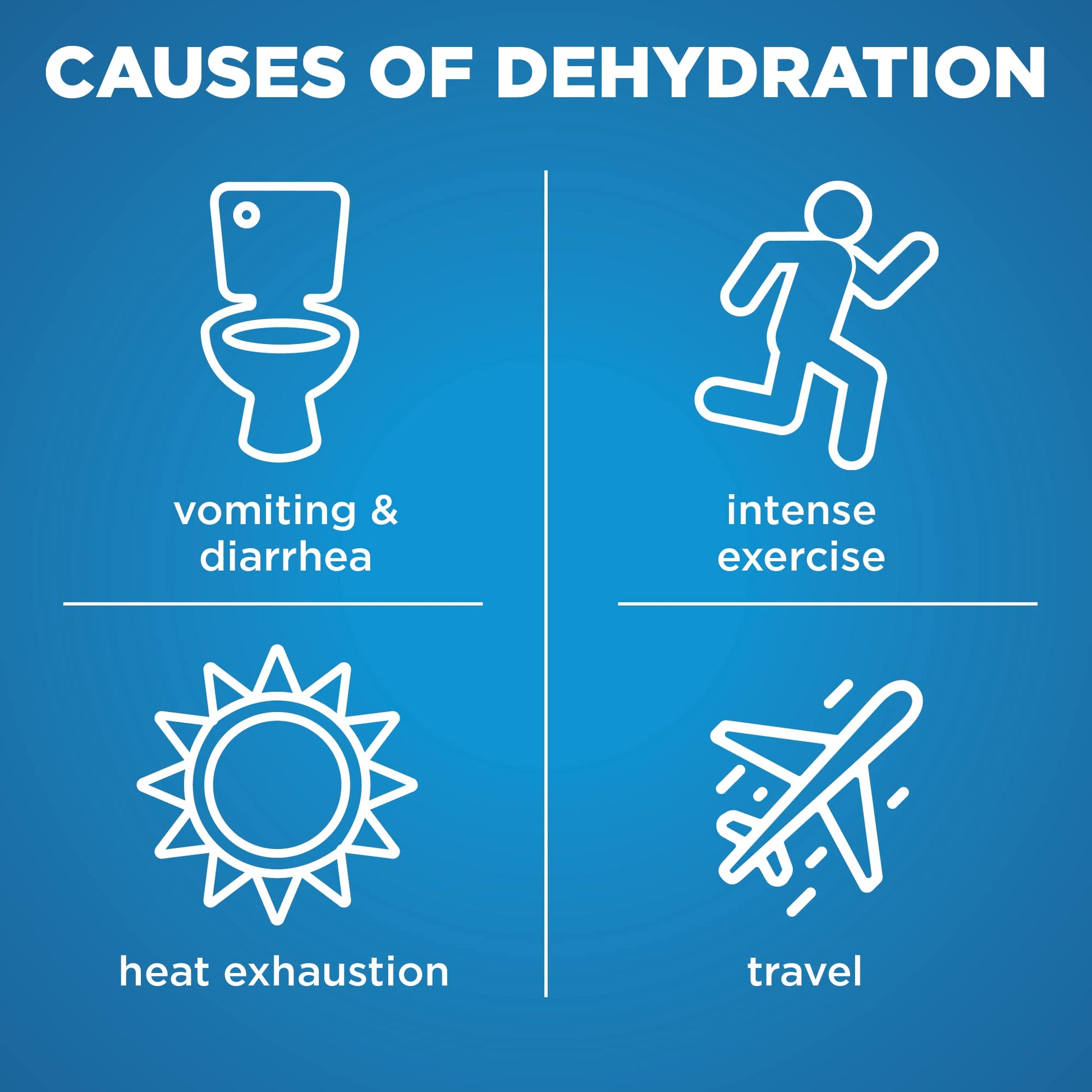 - BOTH KIDS AND ADULTS use electrolyte powder, mixed with water, to help prevent mild to moderate dehydration; to quickly restore important electrolyte levels; common dehydration causes: vomiting and diarrhea, heat exhaustion, travel, exercise