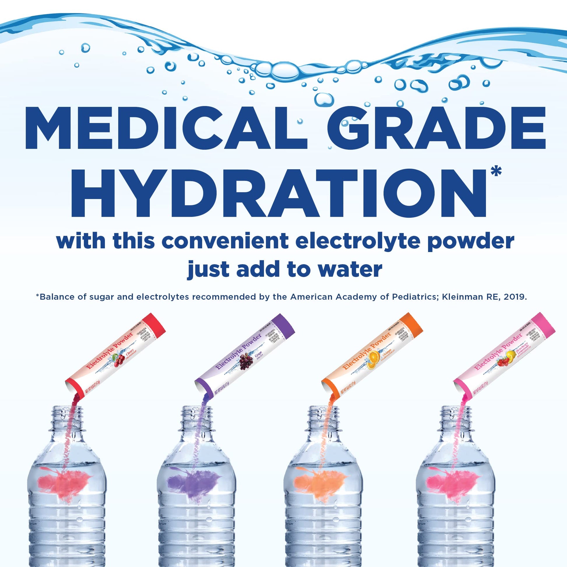 - ELECTROLYTES: Amazon Basic Care Electrolyte Powder Packets, mix with 16 fl oz water for fast rehydration; great for kids, adults; helps prevent mild to moderate dehydration; recommended by pediatricians and pharmacists; compare to Pedialyte