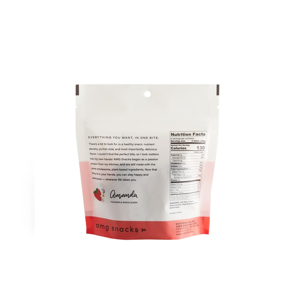 AMG Snacks Strawberry Vanilla Energy Bites | 4.3 oz, Pack of 6 (72 Bites Total) | Date and Nut Energy Snacks Protein Bars | Non GMO, Gluten Free, Vegan Protein Bites | Made with All Natural Ingredient
