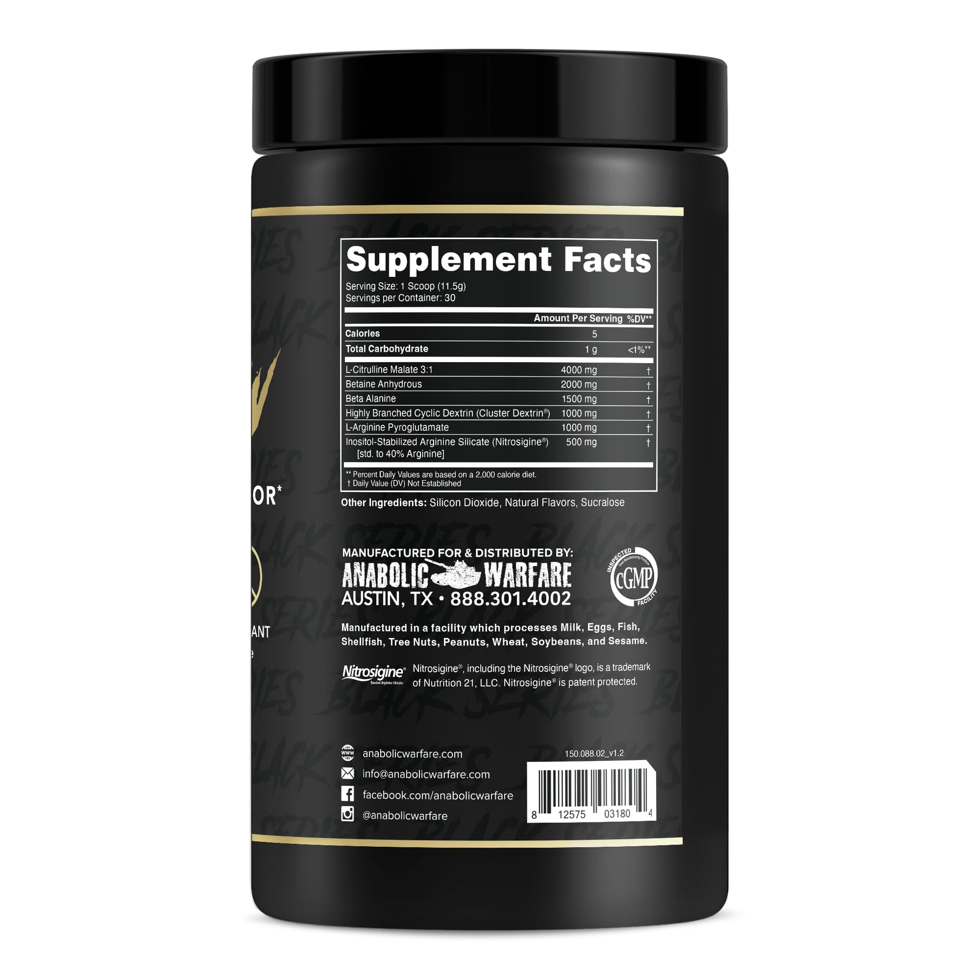- Premium Ingredients: All Anabolic Warfare premium supplements are made at our cGMP facility. Every stimulant free preworkout, as well as our other products are formulated in a safe environment.