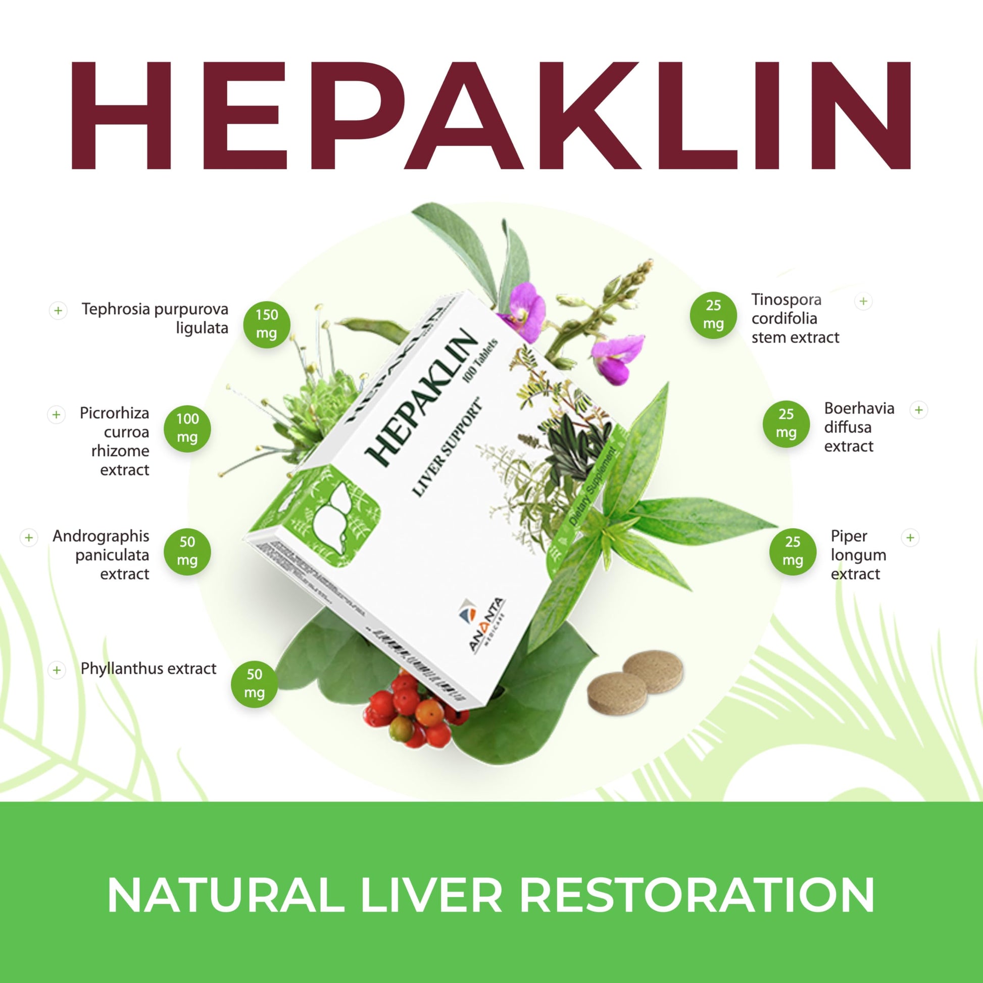 - Natural Liver Support: Hepaklin is a powerful herbal complex that strengthens the liver's resistance to toxins from alcohol, junk food, and medications, promoting natural liver restoration.
