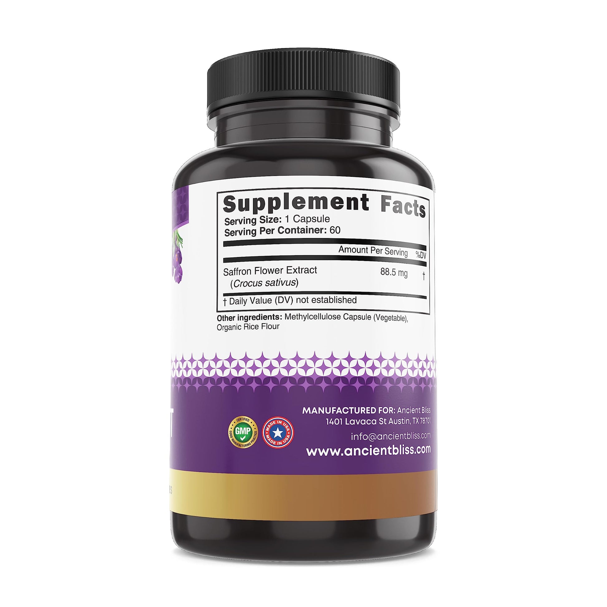 Ancient Bliss Saffron Extract Capsules Mood & Eye Support Supplement, Saffron Extract Appetite Suppressant Weight Management for Women & Men (60 Capsules)