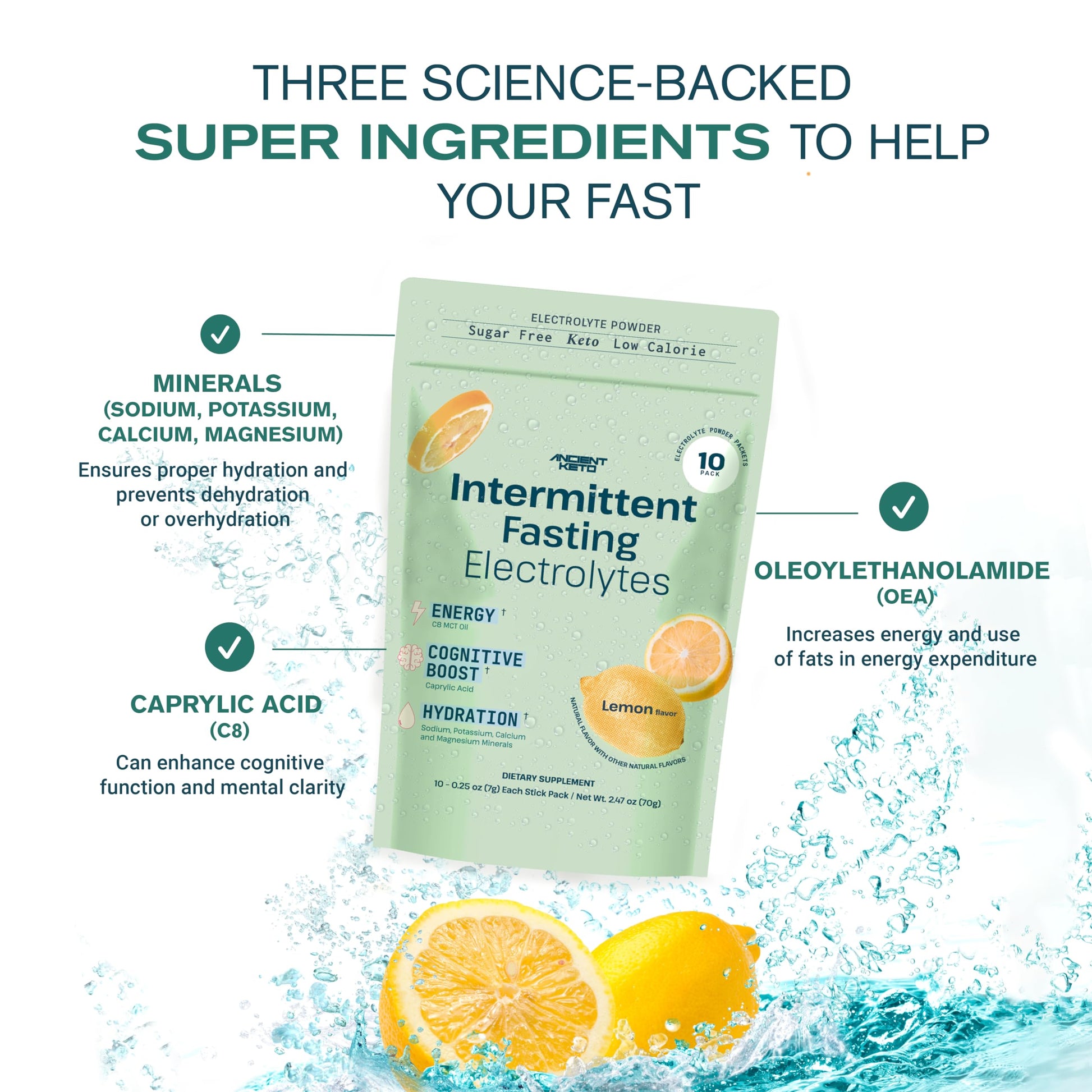 Ancient Keto Fasting Electrolytes - Sugar-Free Electrolyte Powder for Intermittent Fasting - Supports Cognition, Energy, and Hydration | 10 Packets