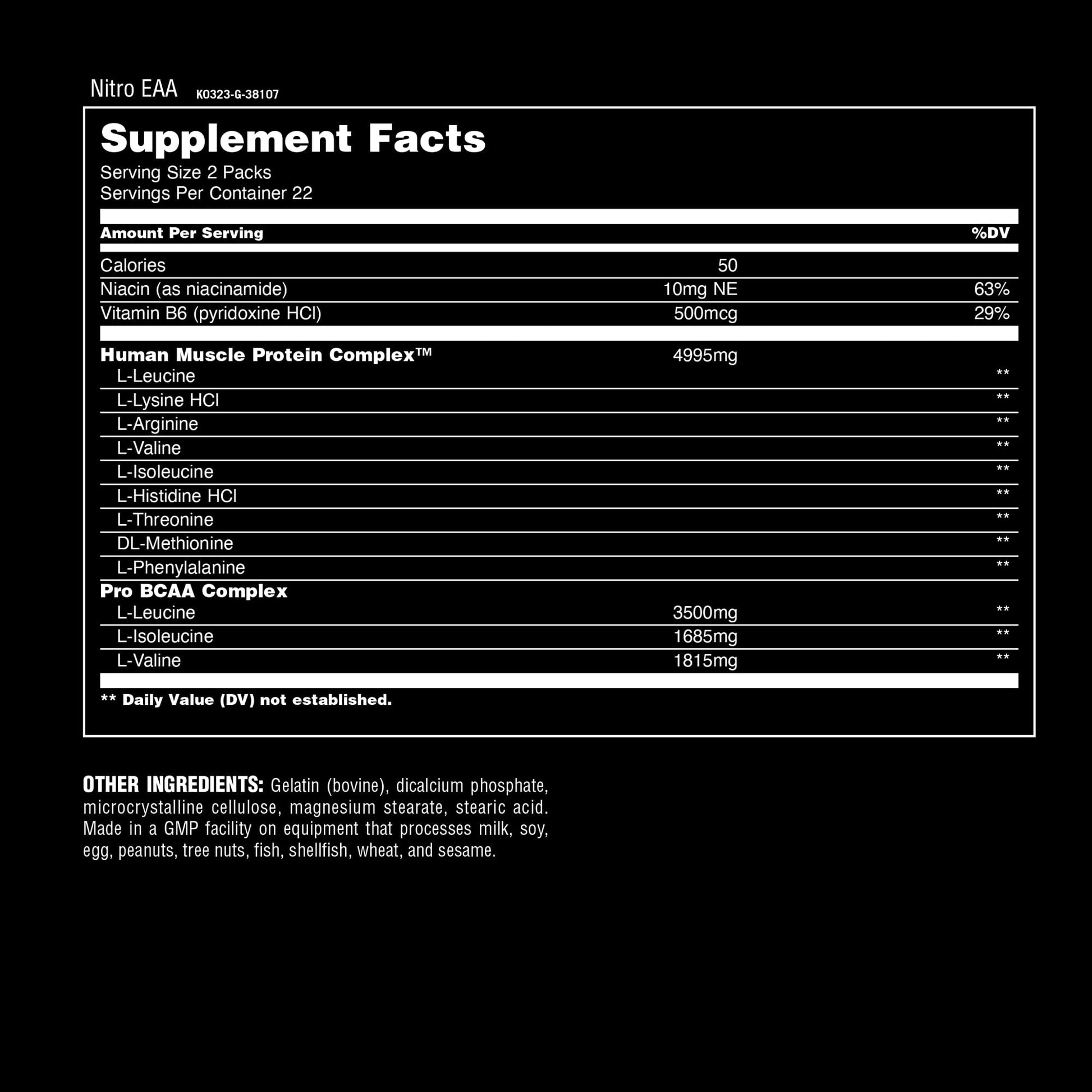 Animal Nitro EAA - Post-Workout Recovery and Repair, Supports Lean Muscle Growth, Complete Spectrum of Essential Amino Acids & BCAA Supplement for Men and Women, 44 Packs