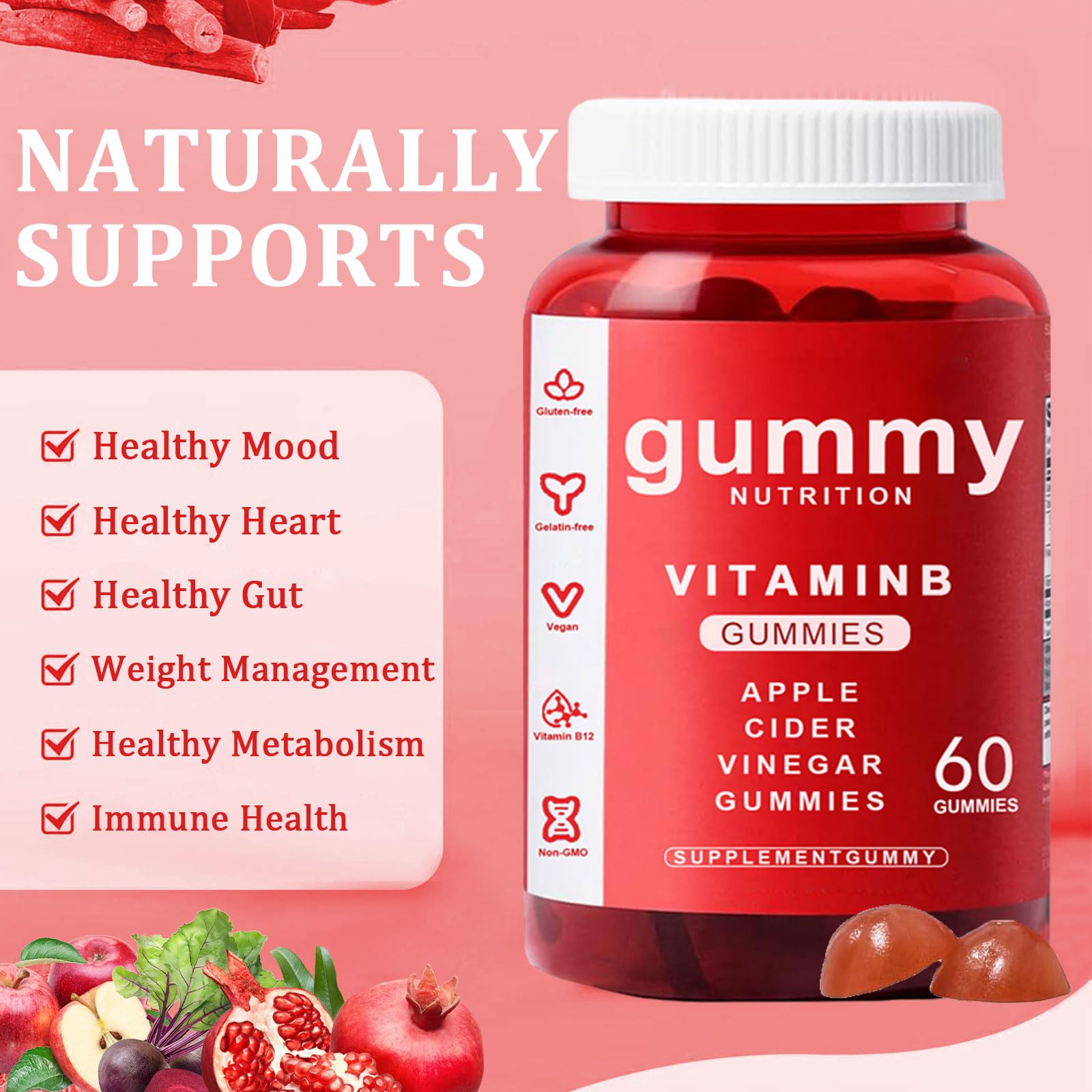 - 【Support Metabolism】Apple cider vinegar gummies made with apple cider vinegar, guaranteed sustained energy. Vitamin B12 gummies are flavored with a delicious mixed berry, satisfy your palate while you relax, restore and unwind.