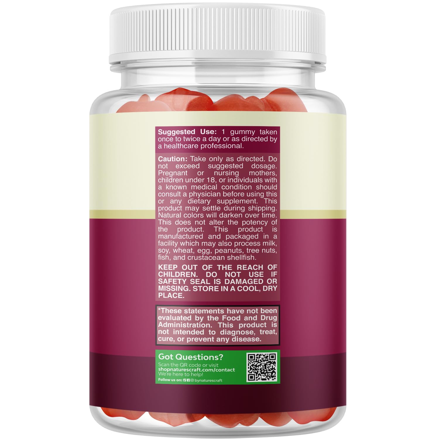 - Formulated in the US - Here at Natures Craft we have your needs in mind that is why our gummy vitamin ACV supplements are gluten free non-GMO formulated by GMP labs and 3rd party tested for potency