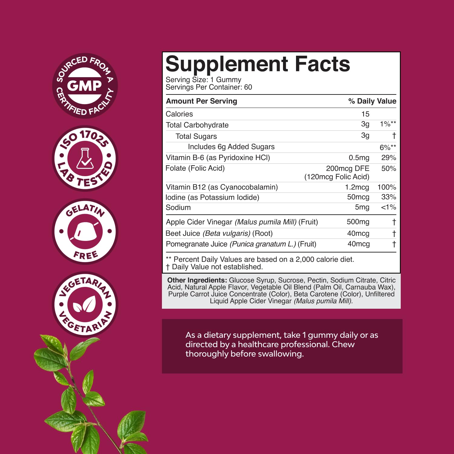- Pre workout gummies - Support your workout results with gummy apple cider vinegar formulated with vitamin B6 vitamin B12 iodine and folate to cleanse your body and help you reach your goals faster