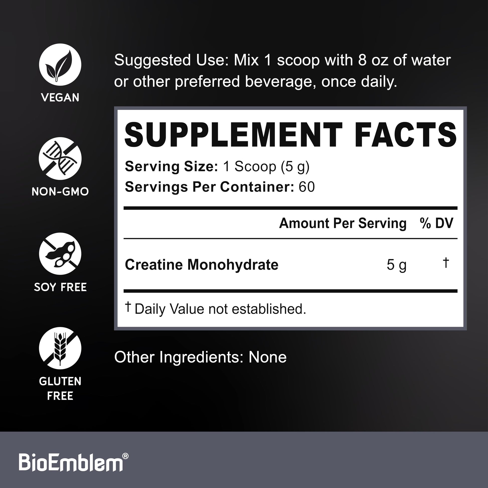 BioEmblem Creatine Monohydrate Powder - Micronized, Unflavored, 5000mg Per Serving(5g) - Supports Muscle Strength, Workout Recovery & Performance Creatine Supplement- Vegan, Non-GMO, 60 Servings