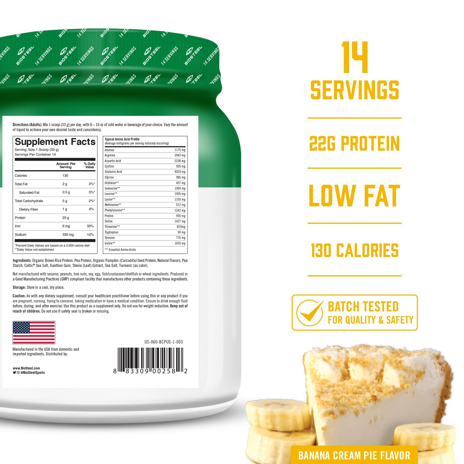 BioSteel Elite Plant-Based Recovery Vegan Protein with Brown Rice Protein, Pea Protein, and Hemp Protein, Banana Cream Pie Flavor, 14 Servings, Gluten-Free