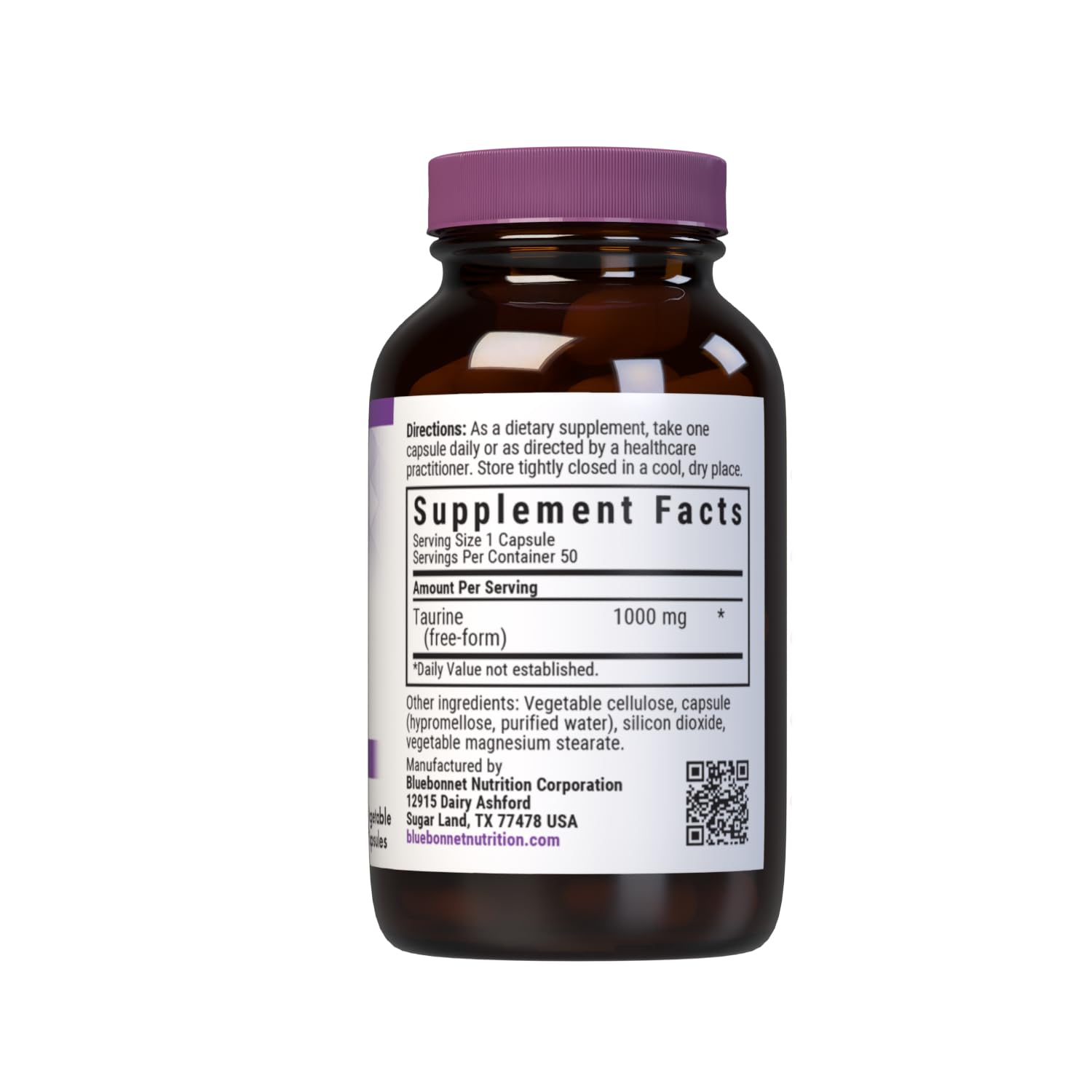 Bluebonnet Nutrition Taurine 1000mg, Free-Form Amino Acid, for Nervous System Health, Soy-Free, Gluten-Free, Non-GMO, Kosher Certified, Vegan, White, 50 Vegetable Capsules, 50 Servings