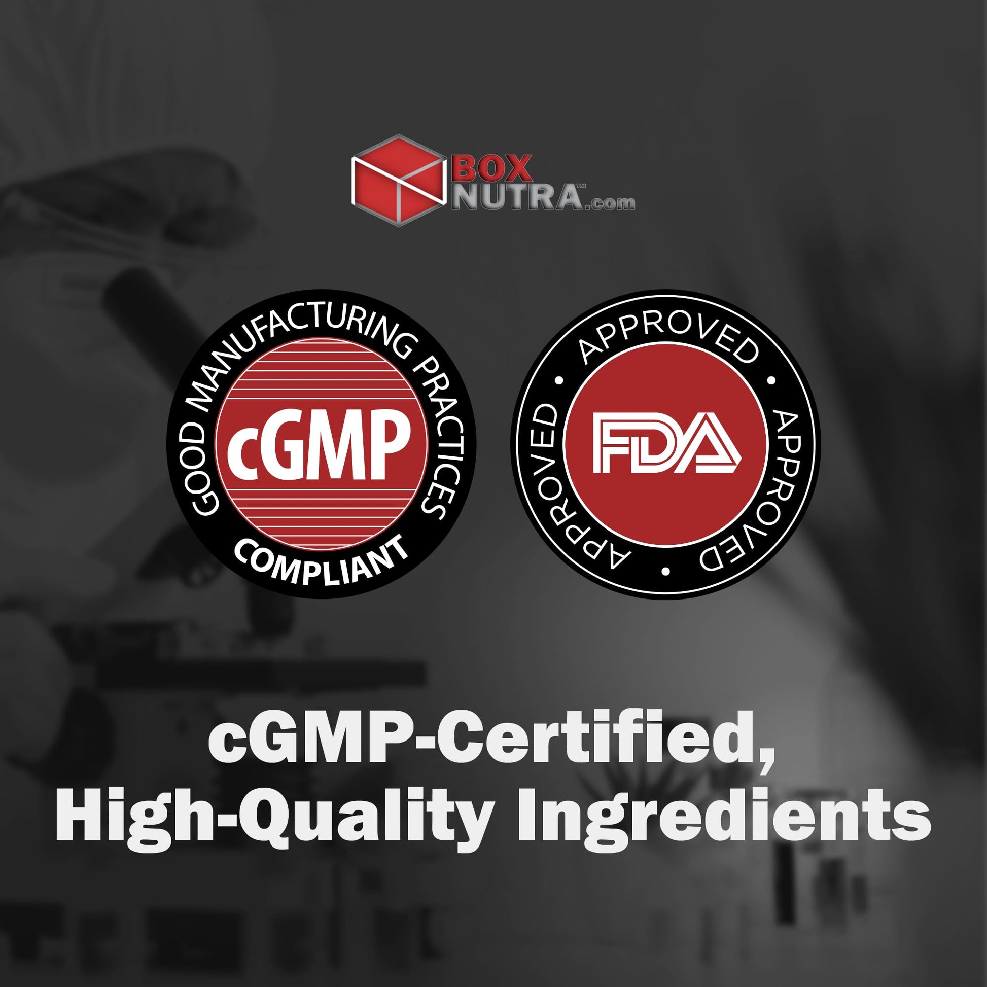 - cGMP-Certified: Current Good Manufacturing Practice, or cGMP, certified this high-quality ingredient after assuring BoxNutra properly designed, monitored, and controlled the manufacturing process and facilities involved in developing Creatine for women and men.