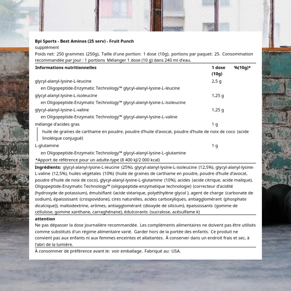 BPI Sports Best Aminos - BCAA Powder Post Workout & Glutamine Recovery Drink with Branched Chain Amino Acids for Hydration & Recovery, for Men & Women - Fruit Punch - 25 Servings