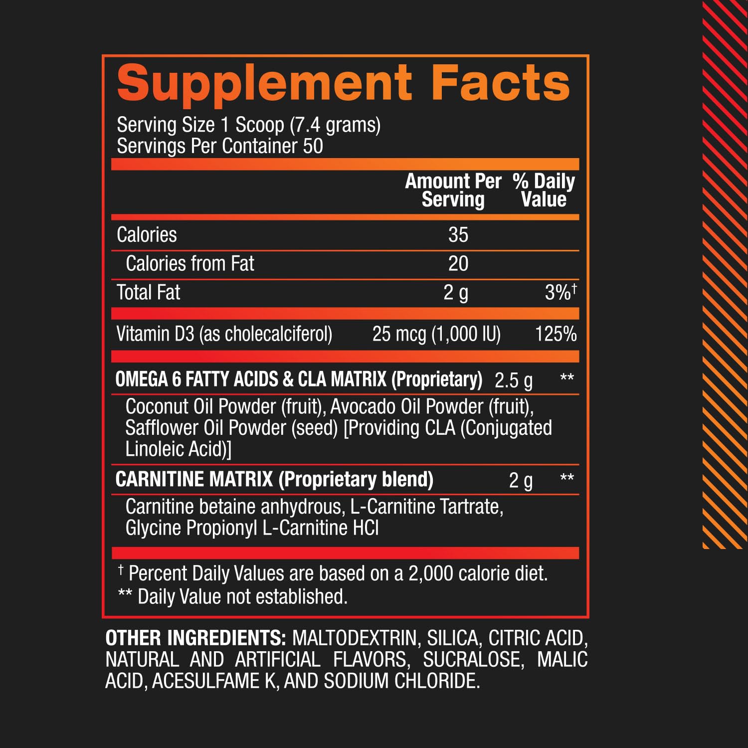 - Conjugated Linoleic Acid and Carnitine: Helps the body convert fat cells into energy