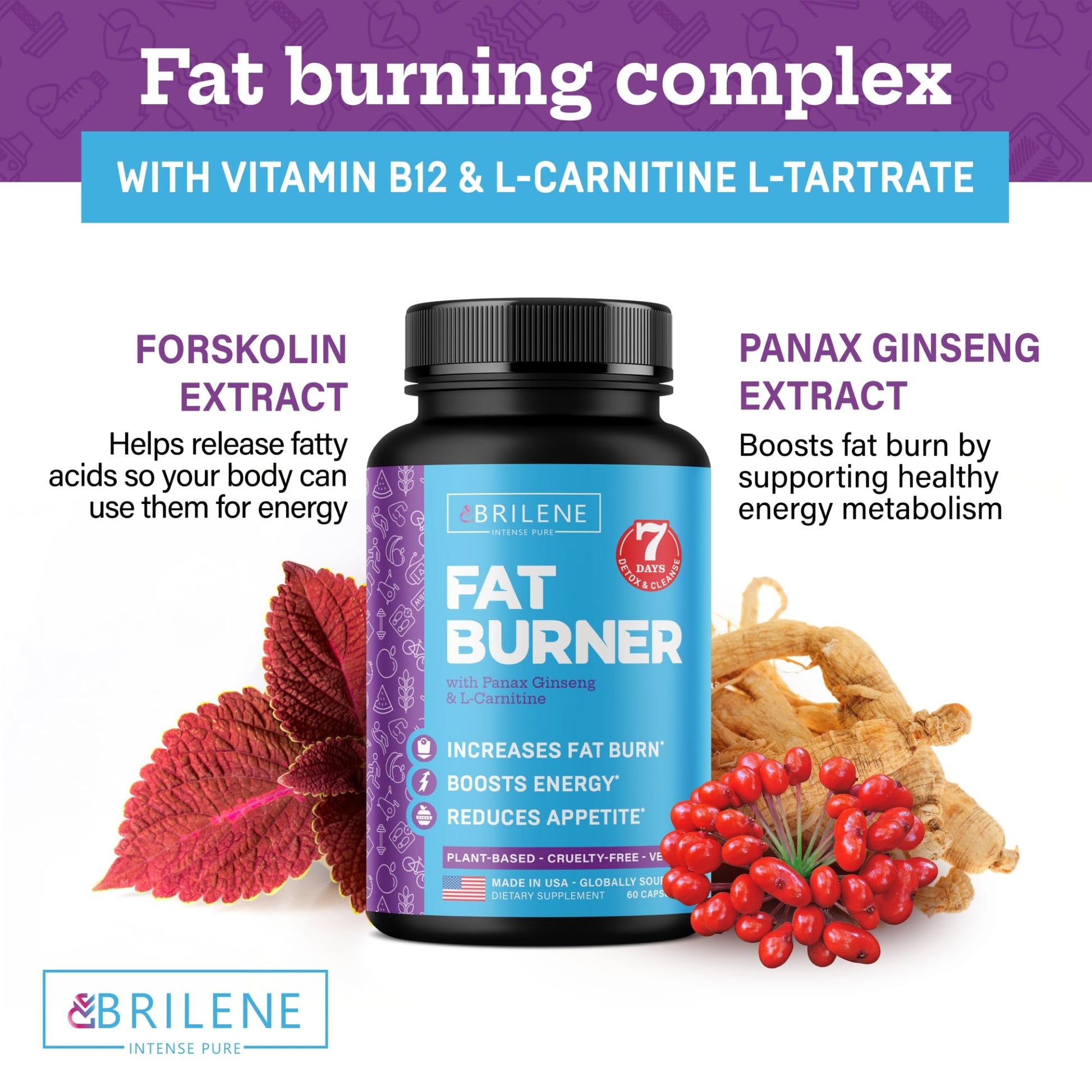 - Natural Ingredients - Our formula incorporates Panax Ginseng, a powerful root known for its appetite-suppressing properties and natural detoxifying abilities. It works well with Forskolin - another plant extract promoting cells to make you slimmer. Finally, B-12 boosts your digestion and body’s ability to utilize fat.