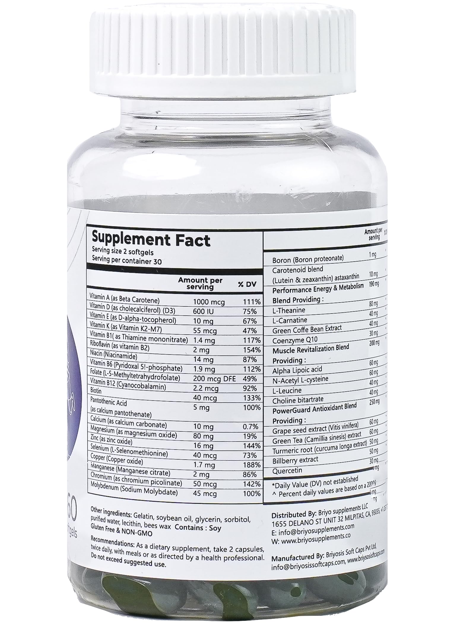 - Our Performance Energy & Metabolism Blend features proven energy-boosting compounds like L-Theanine, L-Carnitine, and Green Tea Extract, delivering a powerful surge of energy to fuel your day. Additionally, our Muscle Revitalization Blend targets muscle fatigue and recovery, promoting optimal muscle function and endurance.