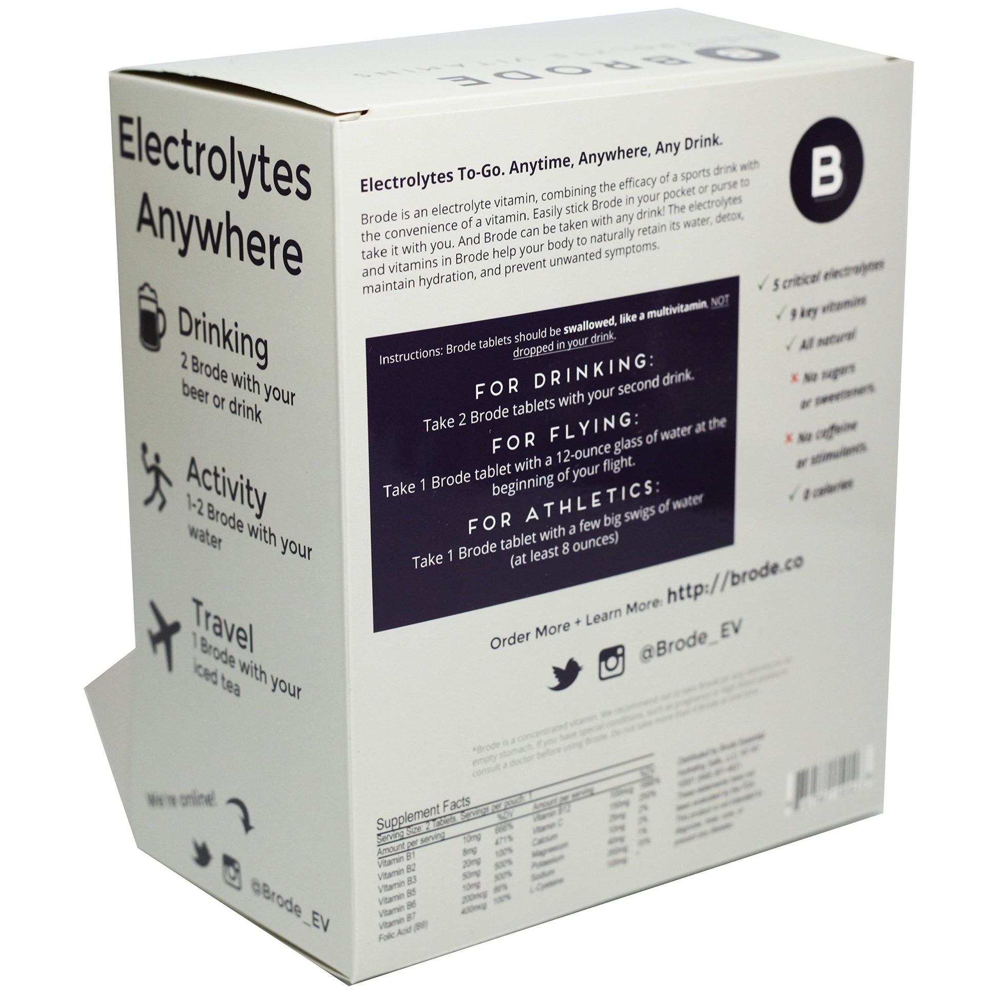 Brode Electrolyte Vitamin - Portable Zero-Sugar Electrolyte Tablets - for Sports, Nightlife, Jet Lag, 5 Essential Electrolytes + 9 Vitamins 100-Packets