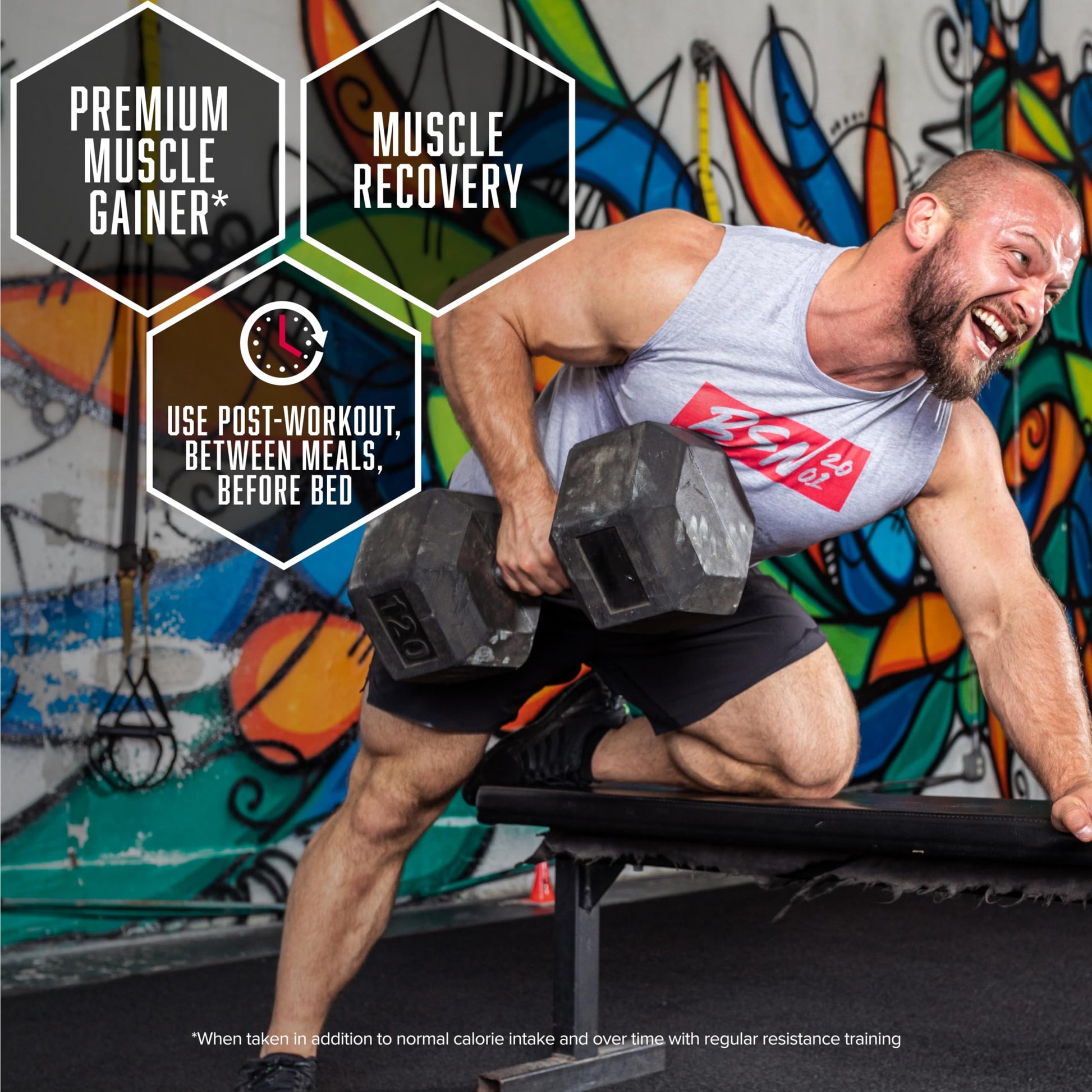 - BSN TRUE-MASS helps you turn heads and make show-stopping mass gains when paired with extreme training. Featuring a 2:1 ratio of carbohydrates to protein, BSN TRUE-MASS is an ultra-premium mass gainer that supports muscle growth and recovery for extreme weight training athletes with above-normal caloric needs. Used post-workout, between meals, and/or before bed, TRUE-MASS weight gainer can help fuel your recovery from training while providing the nutrients your body needs to prepare for the most intense workouts. Add in BSN’s legendary flavor technology, and you have the ultimate weight gainer protein powder capable of producing show-stopping results.