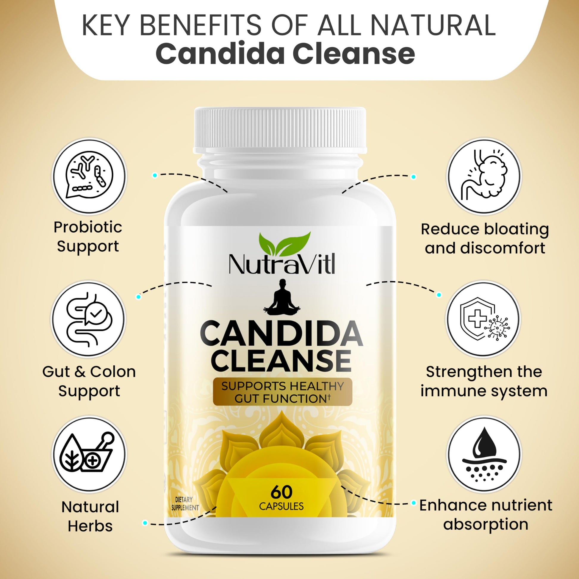 Candida Cleanse (60 Capsules) Gut & Colon Support for Men & Women - Candi Support Natural Herbs for Intestinal Overgrowth Detox - Includes Oregano Leaf, Wormwood, Black Walnut, Caprylic Acid