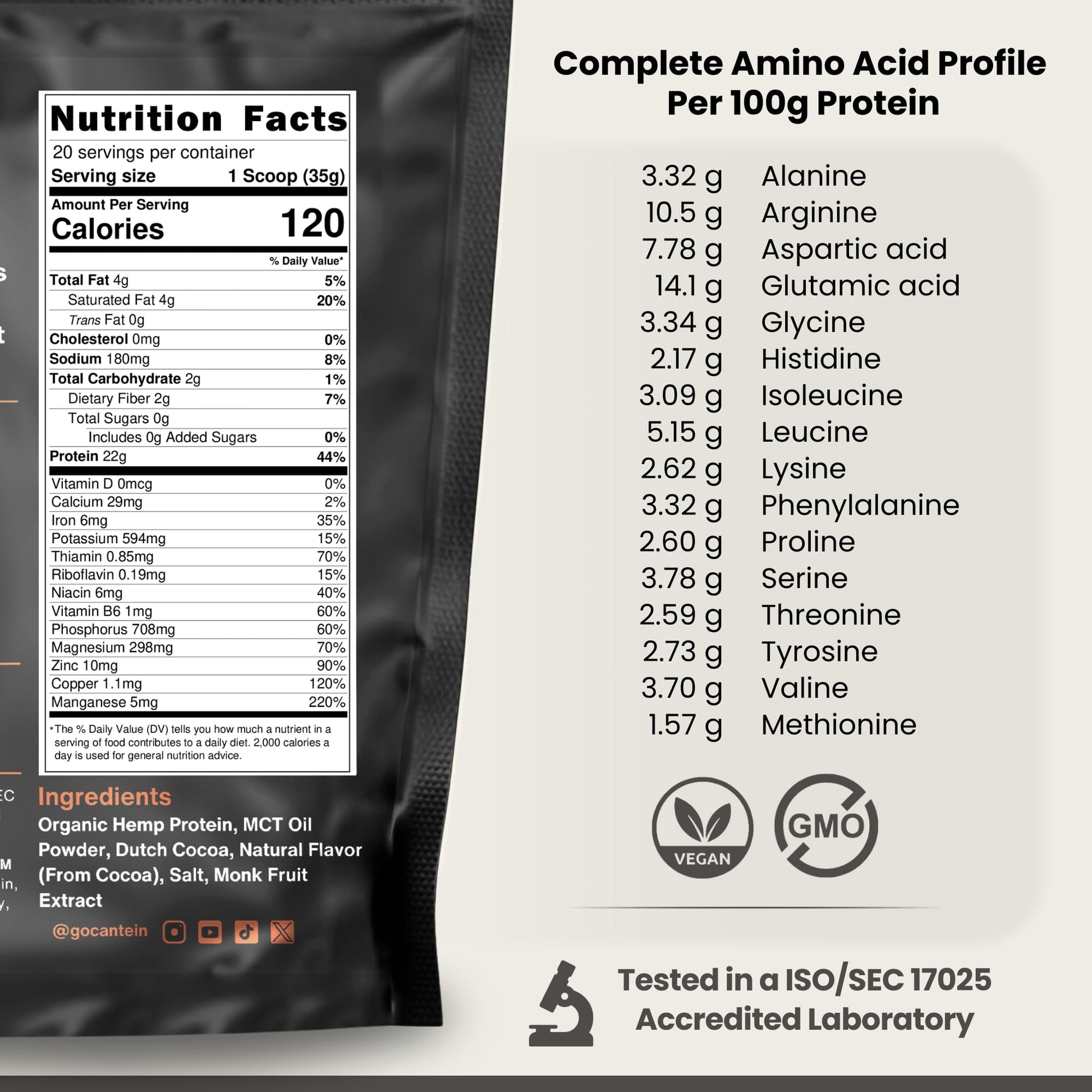 - Certified USDA Organic: Trust in the integrity of our plant-based vegan protein powder, which is certified USDA Organic, non-GMO, and vegan-friendly. Our straightforward label and simple ingredients ensure transparency and quality. Protein is sourced from all organic hemp seeds.
