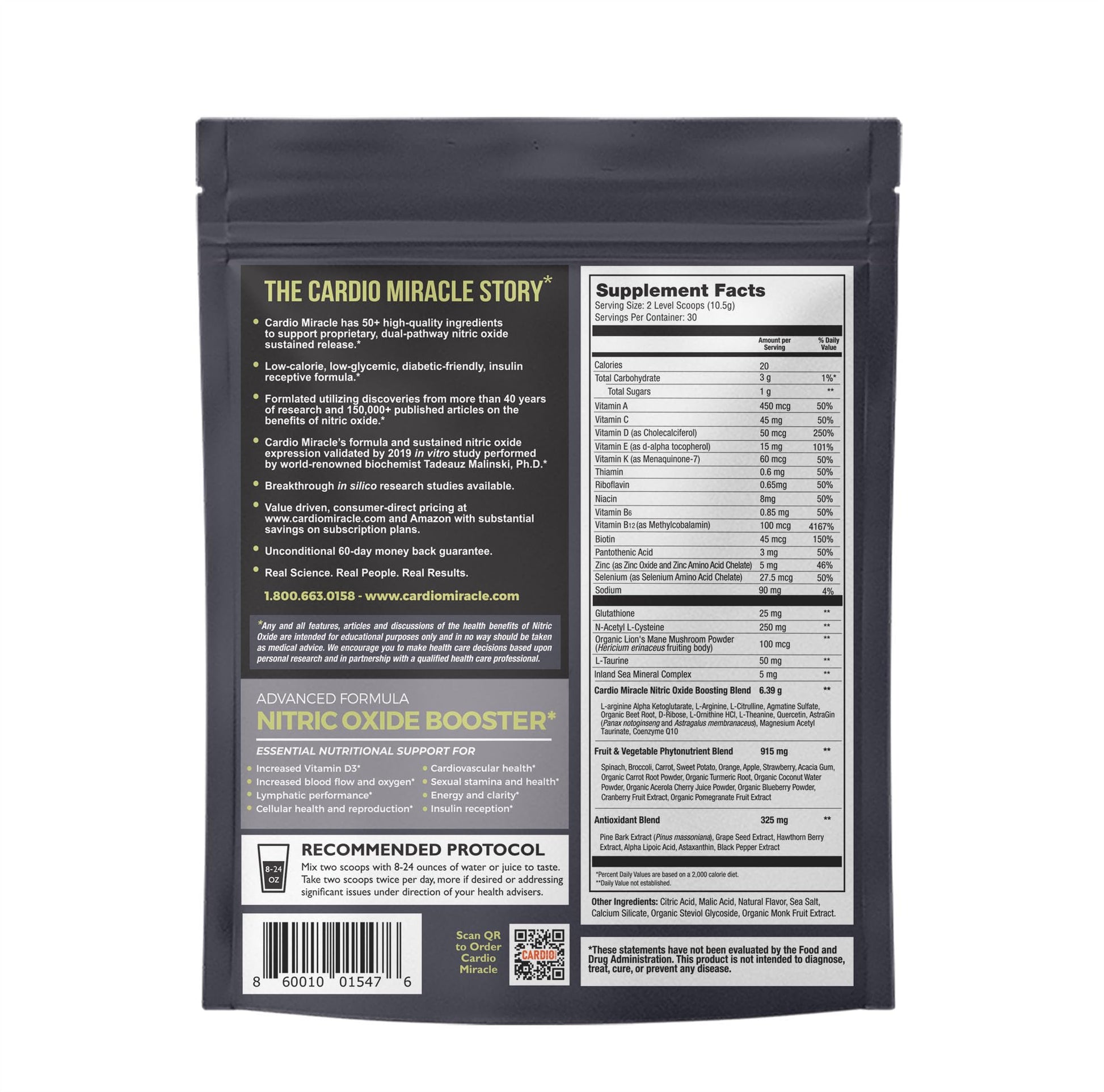 - Cardio Miracle contains 50+ ingredients including L-Arginine AKG, L-Citrulline, Ornithine, Carnitine, Taurine, Ribose, Vitamin D, Antioxidants, Organic Beet Root Powder, Hawthorn Berry, Watermelon Extract, and Astrigin - all absorbed through our unmatched, proprietary Dual Pathway delivery system!