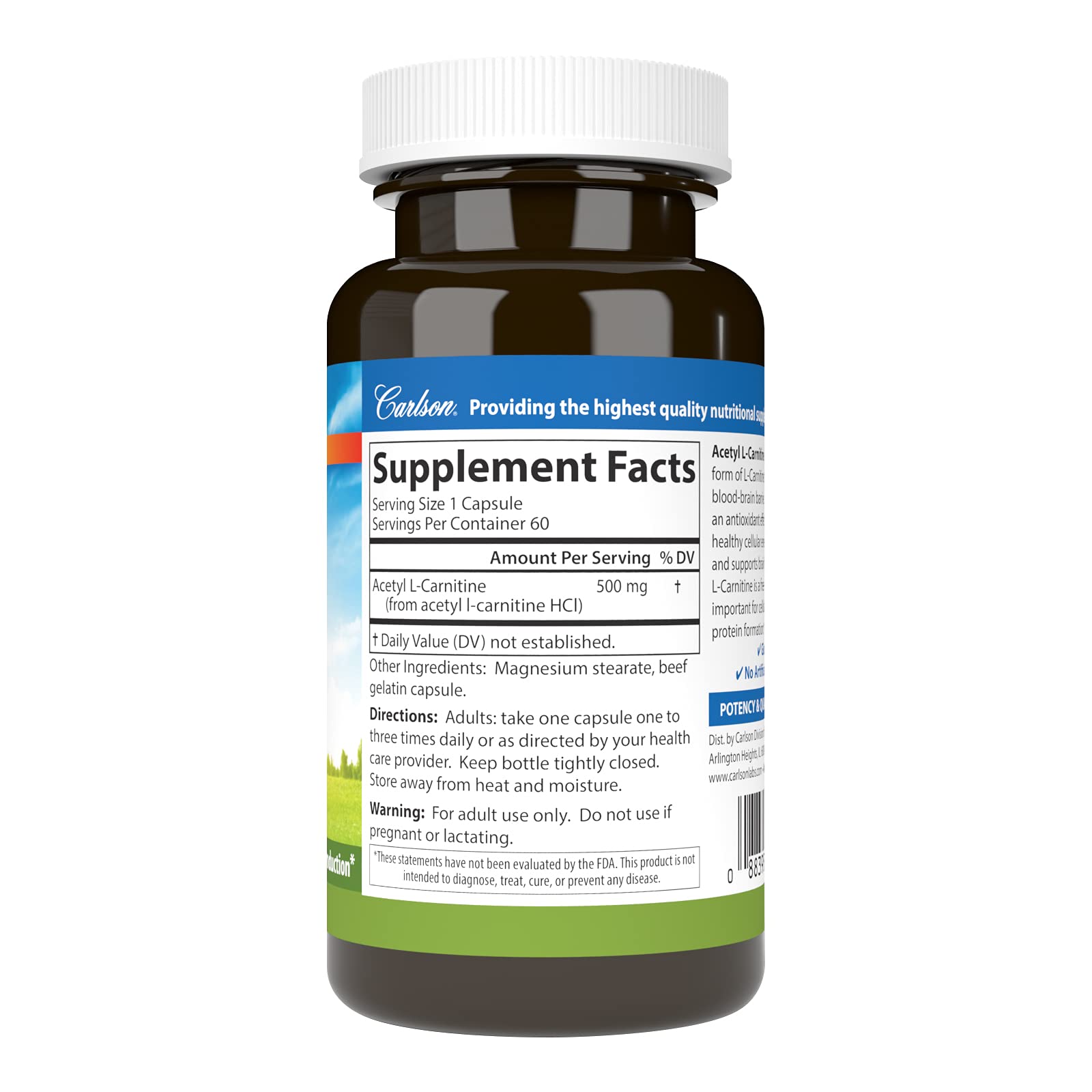 Carlson Labs Acetyl L-Carnitine, 500mg, 60 Capsules