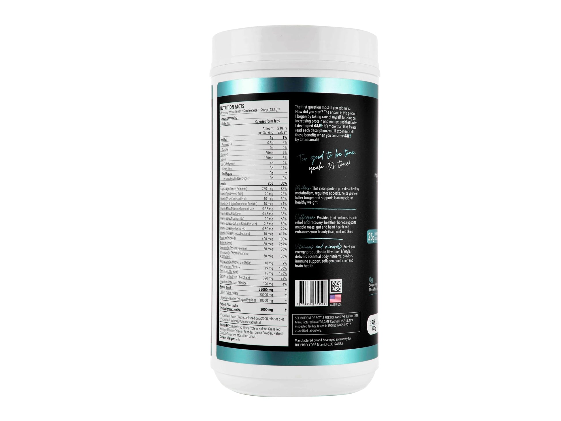 Catamamafit 4U! Chocolate Protein Powder, 25g Hydrolyzed Whey Isolate, 10g Hydrolyzed Collagen, 19 Vitamins & Minerals, No Sugar, Gluten Free, 2 lbs (907g)