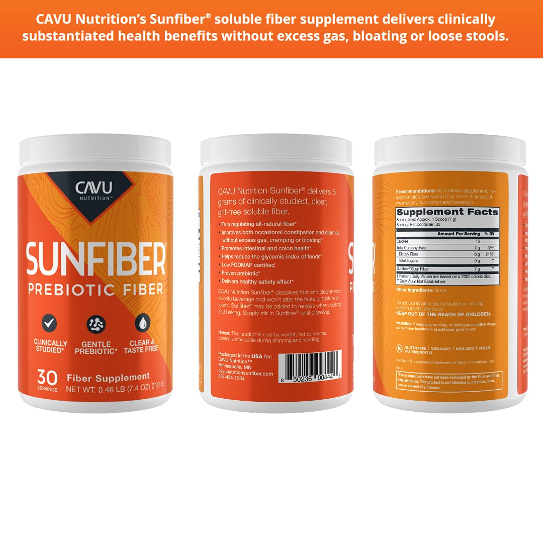- CAVU Nutrition Sunfiber delivers 6 grams of clinically studied, low-FODMAP, prebiotic fiber per serving