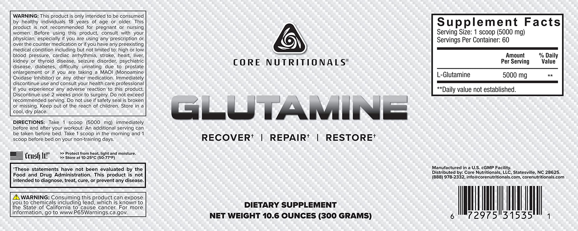Core Nutritionals Glutamine, Enhances Muscle Growth and Immune Support, 5000mg, 60 Servings