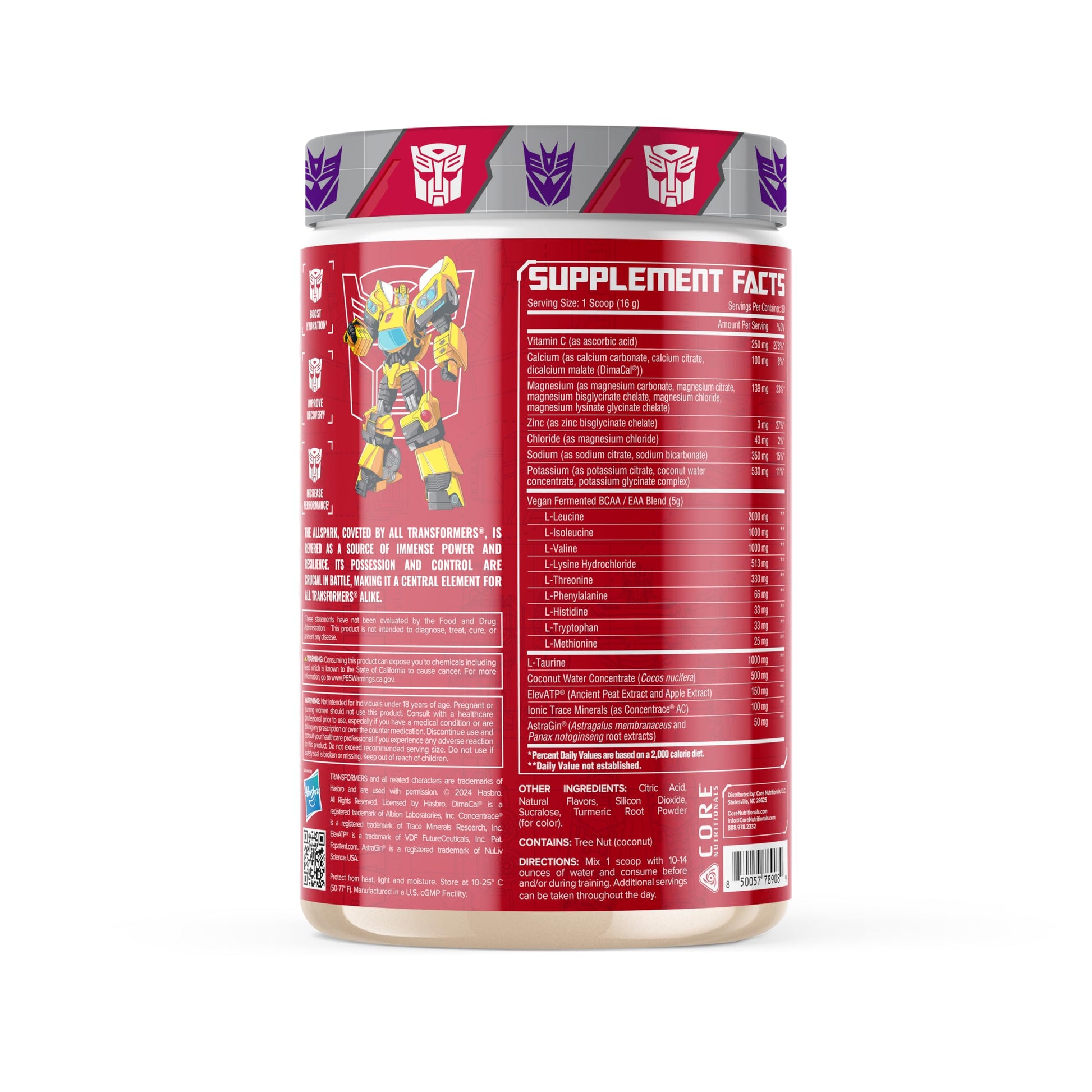 Core Nutritionals | Transformers Allspark Hydration BCAA/EAA Nutritional Supplement Formula (Free Prize Inside - Bumblebee) - for Adults Ages 18+ (30 Servings, Sour Lemon Candy)