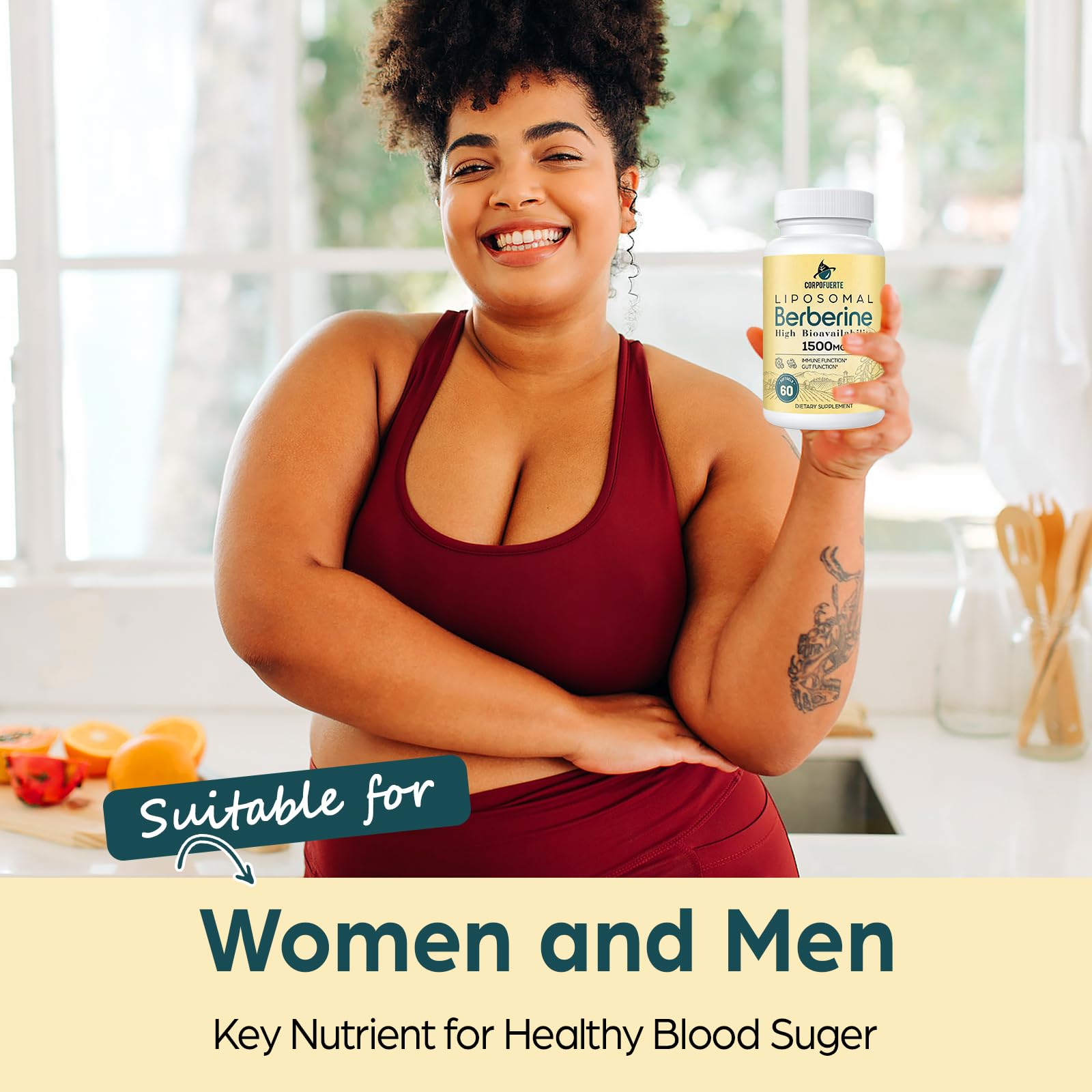 Corpofuerte Liposomal Berberine HCl 1500 mg - Berberine Supplement Activates AMPK & GLP-1 - Supports Reduces Body Burden in Women and Men (1 Pack)
