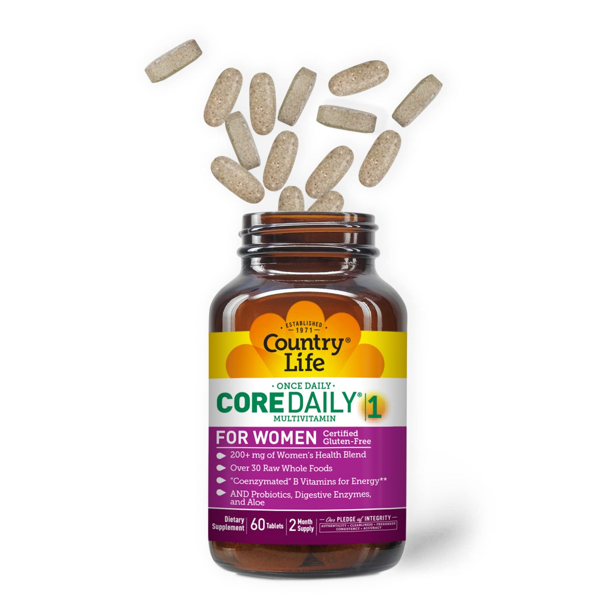 Country Life Women’s Core 1 Daily Multivitamin with Iron, Cranberry, Probiotics, and Digestive Enzymes-Certified Gluten-Free Formula for Energy, Immune Support and Complete Digestive Health,60 Tablets
