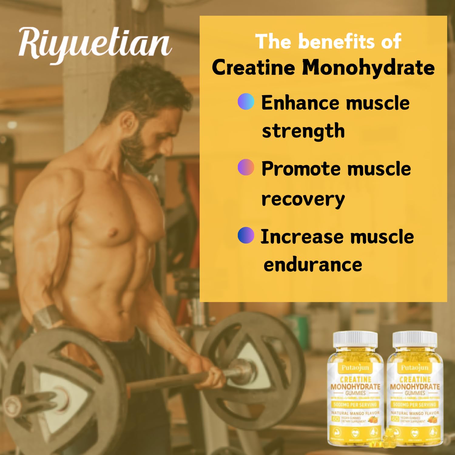 Creatine Monohydrate with Vitamins D3 & B12 | Sugar-free Hydrolyzed Collagen & Creatine gummies | Formulated to enhance Muscle Strength | Workout supplement suitable for men & women | 60 count