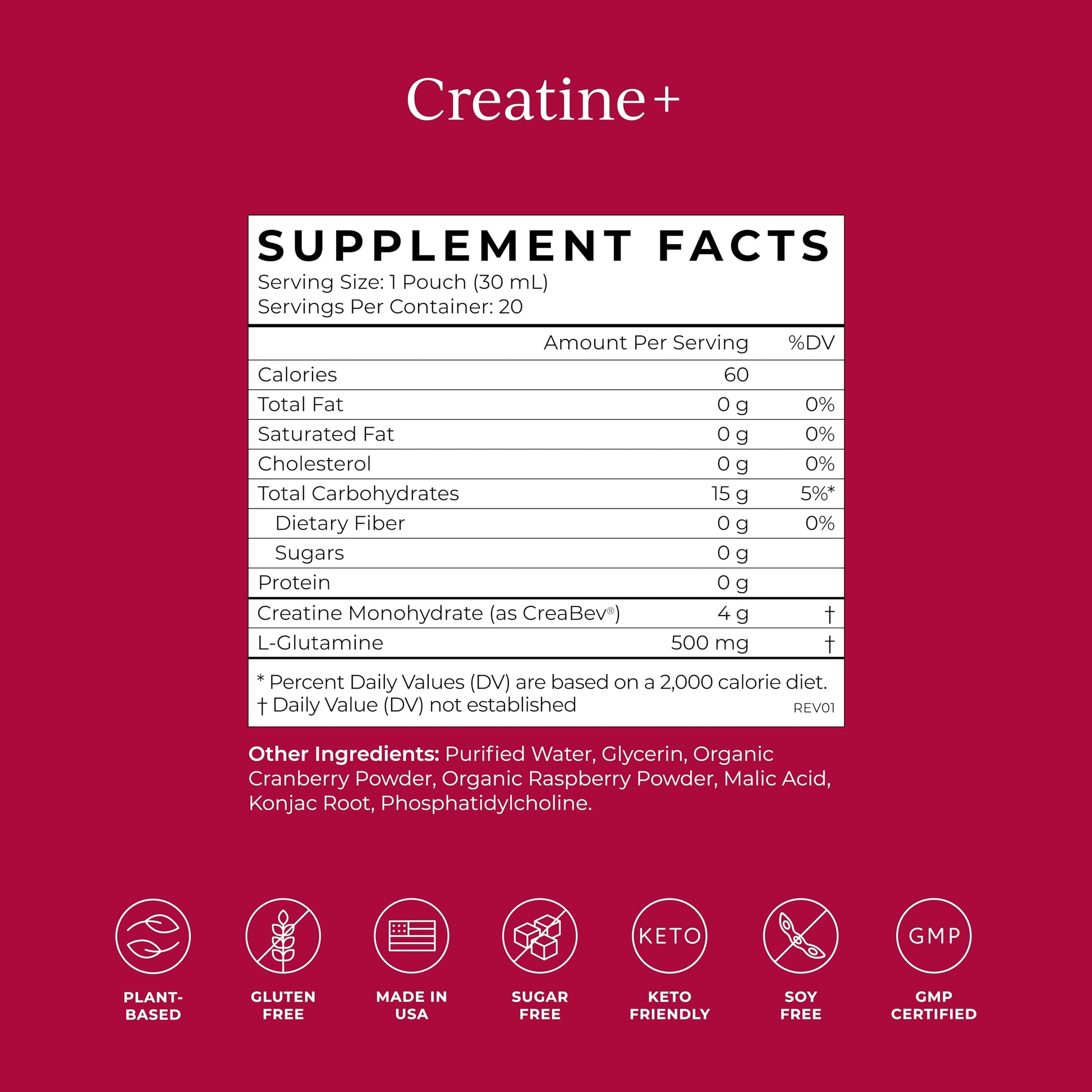 - CREATINE SUPPLEMENT: Our Creatine+ is a highly bioavailable and easily digestible trademarked form of creatine (CreaBev) and l-glutamine, two of nature's most studied amino acids known for supporting energy production, stamina, and the overall health and wellness in both men and women throughout various stages of development and aging.